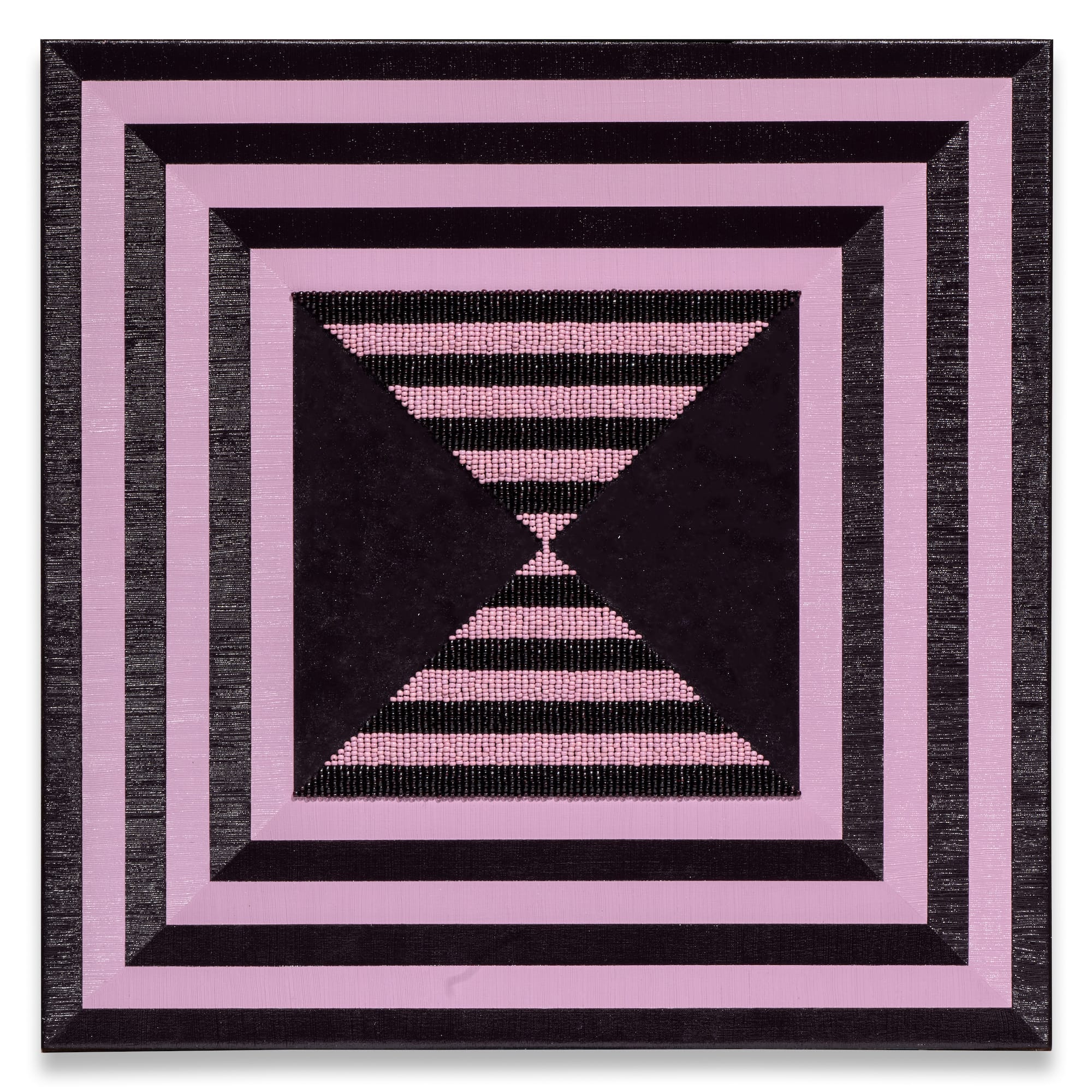 Dyani White Hawk’s (Sičáŋǧu Lakota) mixed media works incorporate beadwork and painting, referencing both Native American traditional art forms alongside European and American modernisms. In doing so, she highlights the influence that Indigenous aesthetics have had on Western art, specifically geometric abstraction, placing what has often been dismissed as “craft” within a fine art context. The show also includes a video installation featuring womeb speakers of eight Indigenous-American languages.