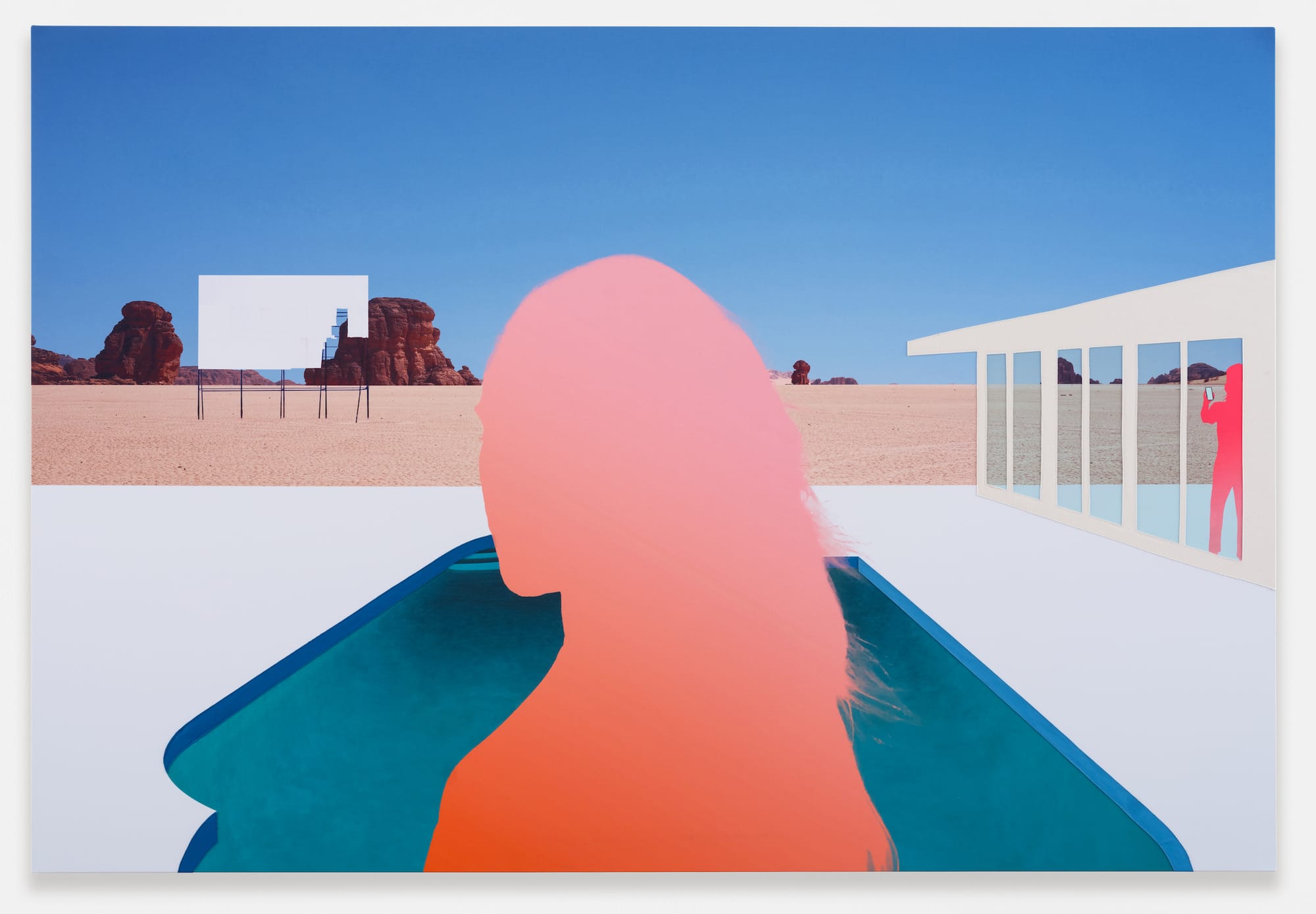 Through his films, sculptures, photographs, and audio works, Doug Aitken presents a dynamic, fragmented vision of contemporary life, specifically as it plays out amidst the contradictions of Southern California. Psychic Debris Field, his sixth show with Regen Projects, juxtaposes the region’s geological and ecological history with its veneer of artifice, obsolescence, and endless possibility. Notable works include a sculpture of the late, beloved mountain lion P-22 made from ocean debris, freeway rubber, organic matter, and seeds; a desert installation with steel cacti, bus stop, ice machine, and two stags locked in combat, their horns glowing; and tapestries depicting a mid-century house and pool that Aitken made while filming Lightscape, his cinematic and musical collaboration with the Los Angeles Philharmonic and Master Chorale, currently on view at the Marciano Art Foundation.