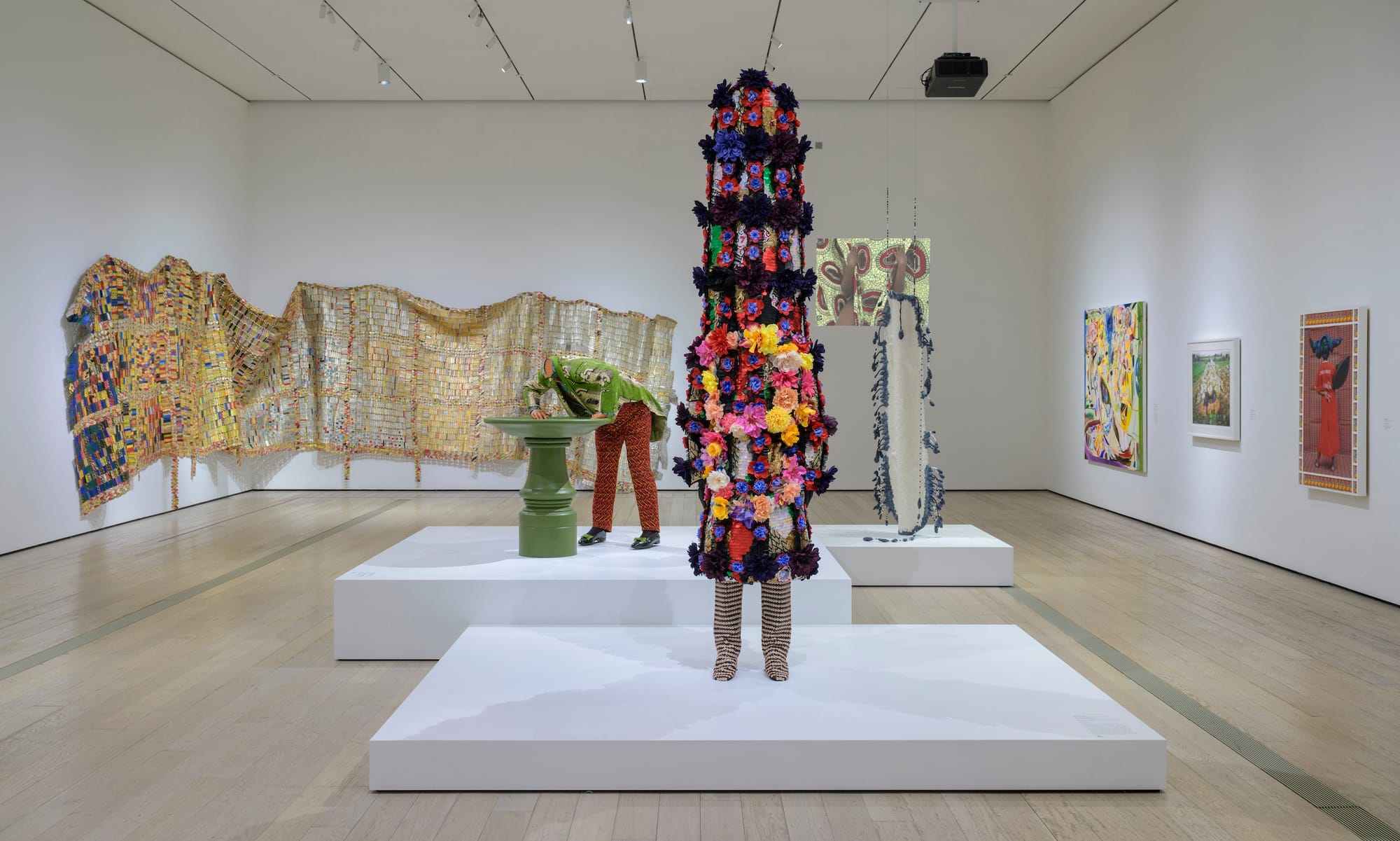 Imagining Black Diasporas takes an expansive view of contemporary Black art, featuring work by 60 artists from Africa, Europe, and the Americas, with a special focus on those based on the West Coast. The exhibition includes painting, sculpture, photography, and video created over roughly the past 25 years, curated by Dhyandra Lawson and pulled primarily from the museum's collection. Bringing together established artists including Lorna Simpson, Kara Walker, El Anatsui, Mark Bradford, Nick Cave, and Glenn Ligon with emerging artists and those likely lesser known to American audiences such as Susana Pilar Delahante Matienzo, Ibrahim Mahama, and Grace Ndiritu, Imagining Black Diasporas showcases the breadth of Pan-African expressions of displacement, resilience, fusion, and reinvention.