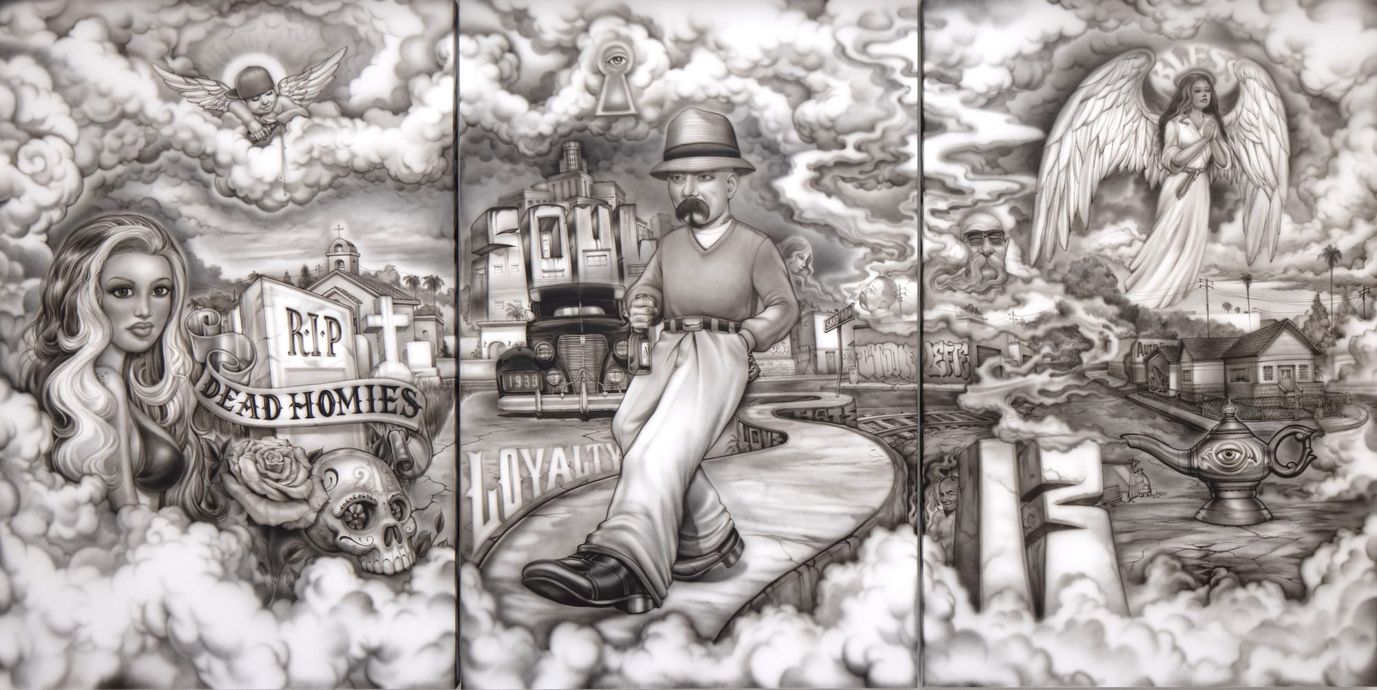 Mister Cartoon is one of the most iconic figures in street art/graffiti/tattoo scenes. The LA native got his start airbrushing t-shirts at car shows, before building a career that spans graffiti, sign painting, and tattooing, counting Snoop Dogg, 50 Cent, and Eminem among his roster of celebrity tattoo clients. His work draws on lowrider aesthetics, classic soul, and Chicano culture, reflecting a vision that is quintessentially LA, but often excluded from (or simplistically stereotyped in) Hollywood representations of the city. Just My Imagination, the artist’s first solo show in his hometown, will be the largest presentation of his work, including drawings, airbrush paintings, a customized car, and a tattoo station.