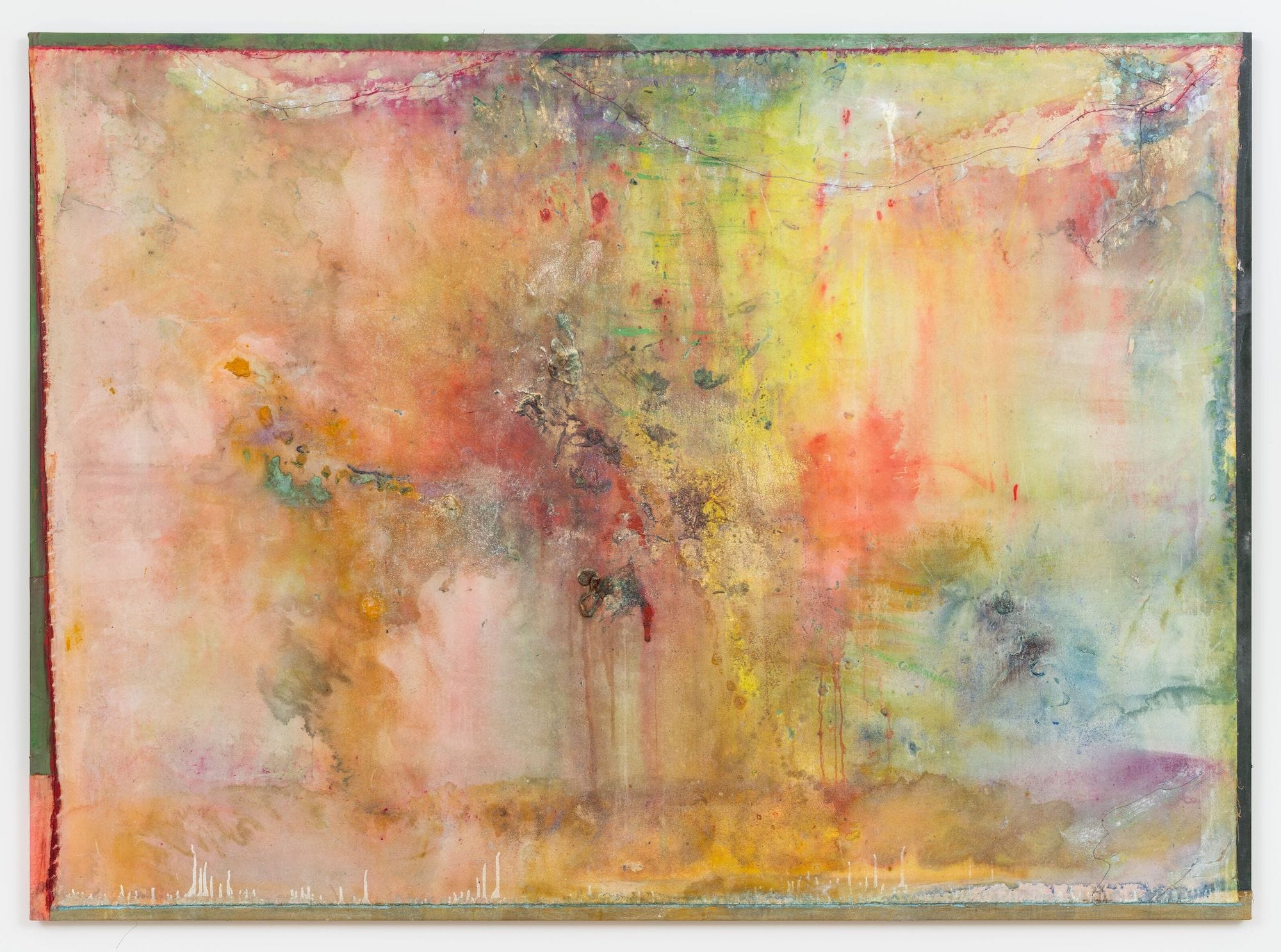 British artist Frank Bowling has been exploring the idea of the landscape since the 1960s when he garnered acclaim for his Map Paintings, which featured the crisp outlines of countries or continents on vast swaths of luminous color. His current show at Hauser & Wirth West Hollywood shows that his obsession has not waned, featuring 11 new abstract paintings that suggest physical or psychological landscapes. Bowling pulls from a range of techniques: pouring paint, brushing, and staining his canvases, onto which he collages found objects. The resulting works recall the atmospheric light of J. M. W. Turner as much as the tropical palette of Bowling’s native Guyana, revealing an autobiographical landscape of sorts.