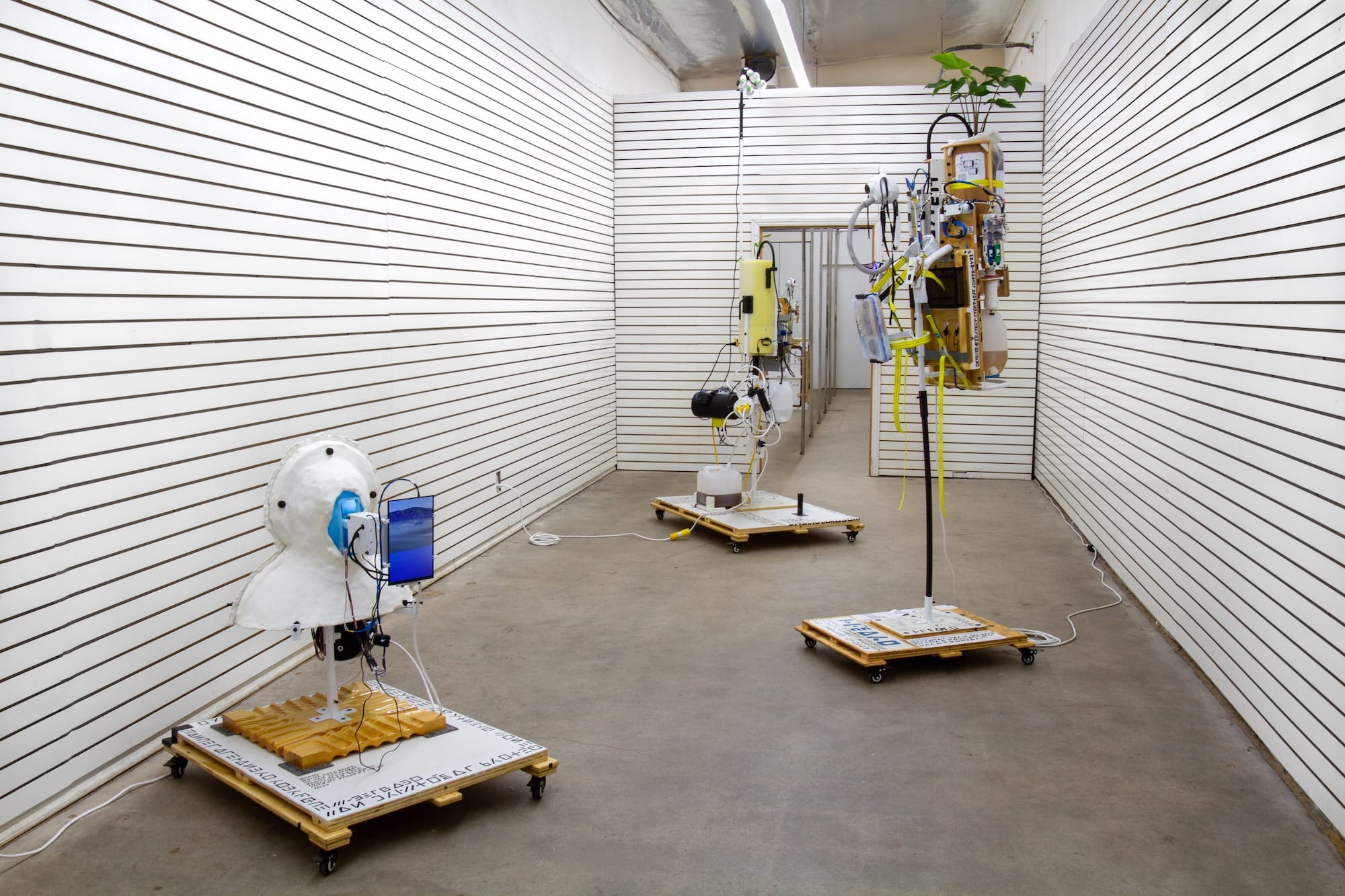Manuel Alejandro Rodríguez-Delgado creates mobile living systems for a post-apocalyptic near future. His first solo show in LA, Porvenir/Portátil, features wearable sculptures that filter air and water, made from everyday items like PVC pipe, rechargeable batteries, and hairdryer fans. Two of the units house saplings smuggled into the United States from the Puerto Rican rainforest, “aliens” that will provide sustenance for inhabitants of a brave new world.