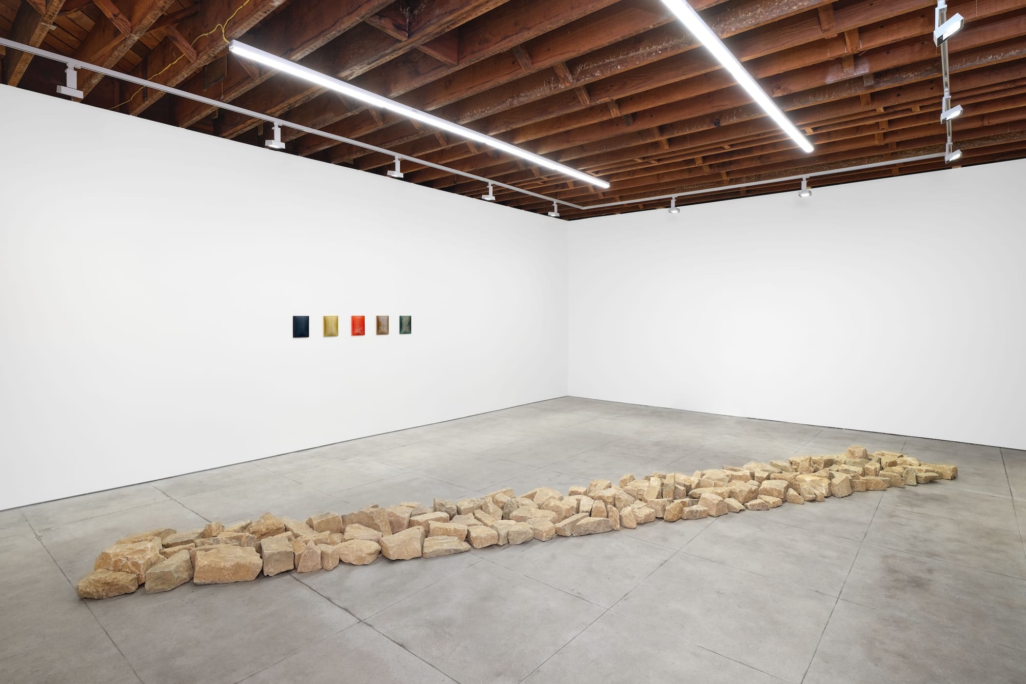 Casting a Glance gathers work by 18 artists who engage with the late Robert Smithson’s provocative and innovative approach to artmaking. In his brief but influential career, Smithson redefined what the art object could be, exploring impermanence, decay, and duration. He polluted the refined geometries of minimalism with natural materials and created site-specific artworks in the indeterminate suburban zones, far from the urban gallery districts. Participating artists who continue Smithson’s interest in the undefined and in-between include Steve McQueen, Leonor Antunes, and Tavares Strachan.
