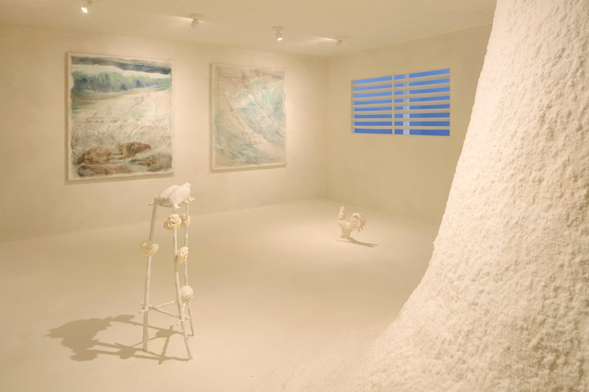 This exhibition brings together two artists working with the natural world, either through direct physical intervention or AI-aided digital investigation. Imagine Inscape by Edith Dekyndt, in collaboration with the Belgian design studio Unfold, begins with a piece of fossilized wood, its voids and hollows filled in by AI. The results are then woven into bright, monochrome tapestries, lending a sense of tactility to her digital process. Dekyndt’s piece is presented alongside work by Richard Long, the veteran land artist whose analog engagement with rocks and earth offers fresh visions of our everyday experience of nature.