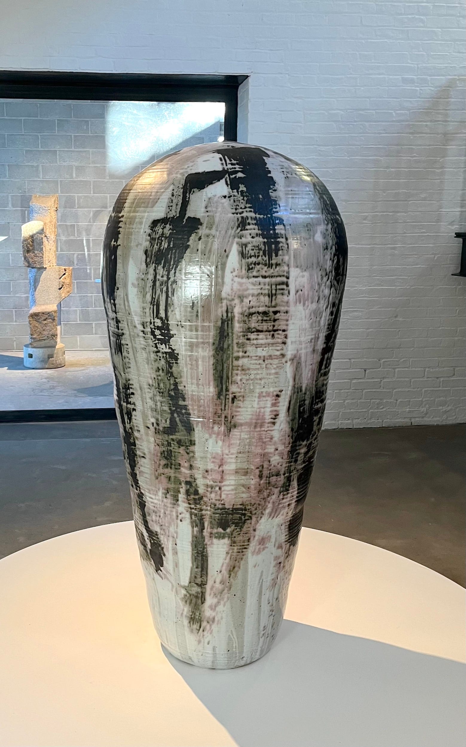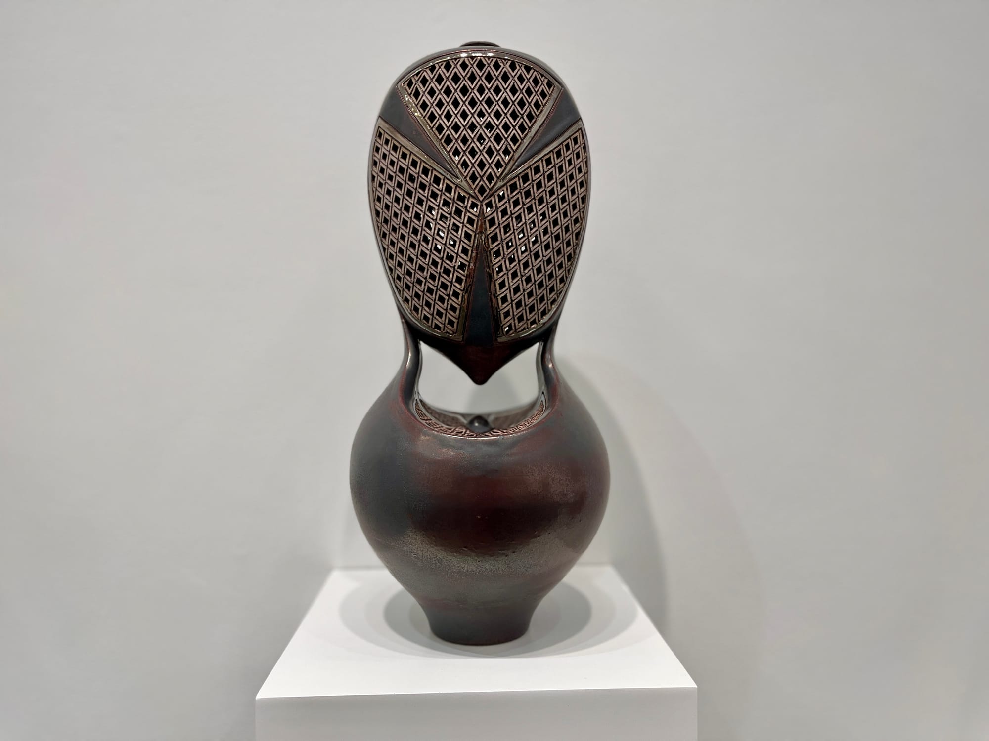 The ways Toshiko Takaezu cracked and cajoled the ceramic world is fully expressed in Worlds Within at the Noguchi Museum. Visitors may wander among her famous towering forms unimpeded by pedestals or ropes, achieving the sensation of an intimate studio visit. For the show, the museum obtained work that rarely travels, like the Star Series (1999–2000) from the Racine Art Museum, and carefully reassembled her earliest exhibition displays from Cranbrook Academy of Art in Michigan, the Contemporary Arts Center of Hawaiʻi, and other institutions. Her emotion, discipline, and sense of play are evident in everything from the Momos, a variant of her closed forms with a cleft at the crest, which she made for many years after her mother’s death, to her spherical moons hung in hammocks, a method for drying that became a manner of display. Her bold and bewitching glazes confirm that Takaezu was not only a master of clay, but a great American painter in the round. —Kealey Boyd