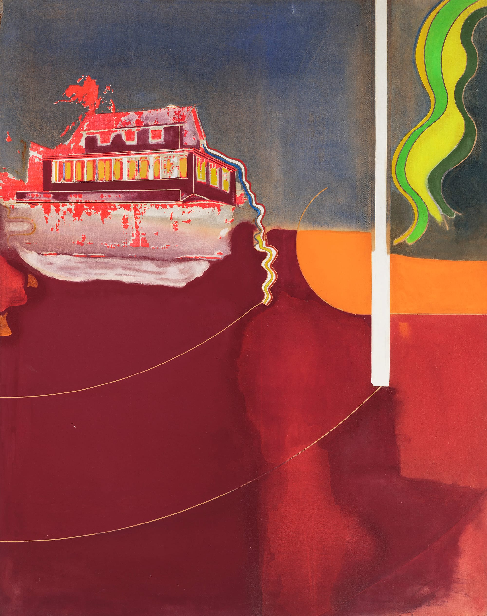 Bowling spent just under a decade in New York from 1966 to 1975 and the exhibition at SFMOMA highlights this period in his life, presenting large-scale paintings that combine British landscape traditions and Ab/Ex gestures. During this formative time in New York, the artist participated in critical debates around abstract painting and the role of Black cultural identity with his contemporaries, including the artists Jack Whitten, Mel Edwards, Al Loving, and Daniel Johnson. In 1969, Bowling curated the ground-breaking exhibition 5+1 at Stony Brook University in New York, showcasing the work of five African-American abstract artists, including himself. Bowling continues to, in his own words, “update painting traditions” from his London studio.