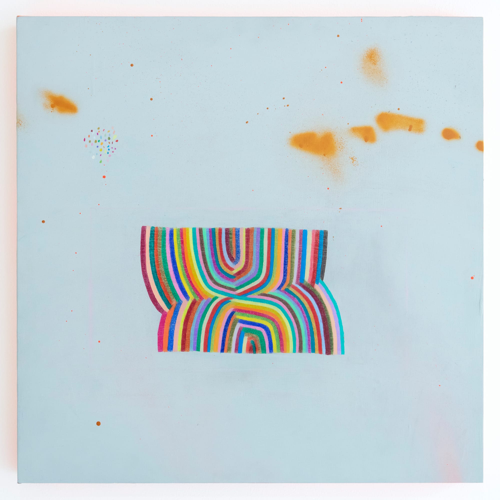 Having studied at UC Berkeley graduate art school with her mentor, the notable Funk ceramicist Richard Shaw, McCarthy quickly became an honorary member of his family, forming connections with artist Martha Shaw, his collaborator and wife, and their two children, musician and painter Virgil Shaw and photographer Alice Shaw. McCarthy invited Martha Shaw to participate in this summer's two-person show and explains: “There is this beautiful and haunting quality about Martha’s work that stays with me as well as her dark sense of humor. It’s also the attention she holds to objects most folks never hold a gaze to, like a stick of butter.” Shaw’s still lifes and landscapes create a harmonious dialogue with McCarthy’s work. In “Ranunculi” (2023), a small oil on canvas panel, Shaw assembles a bouquet of colored flowers with a soft brush and elegant touch — not unlike the poetry of a classic McCarthy double rainbow helix.