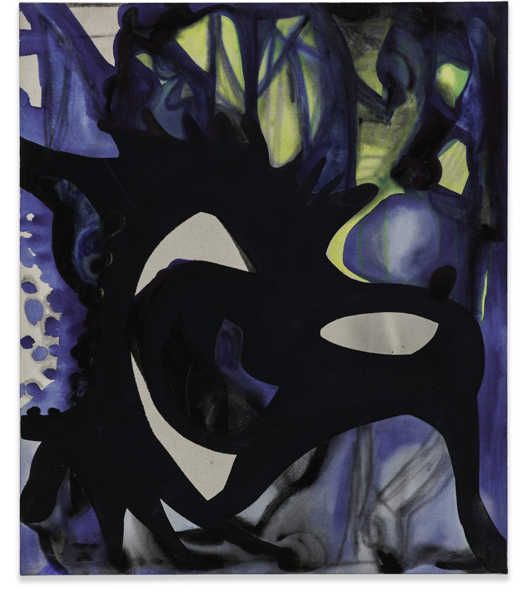 Annie Bielski boasts a dynamic bio of artist, performer, poet, and writer. Her solo show Raw Footage, her second at SEPTEMBER in Kinderhook, demonstrates the wildness and lyrical flow of her painterly and creative gestures, where blankets of brassy colors embrace and wrestle with abandon. Bielski’s exuberant abstract style as seen in her sinuous mixed-media compositions, including her largest canvas to date, which measures 5 by 10 feet, is both flirtatious and exploratory. Works such as “Knockouts for Olive Oyl” (2023) and “Acequia” (2022) reflect her unique approach to drawing, staining, and layering colors on canvas to express an orchestra of vibrant energy. Select pieces such as “Moving Parts” (2024) and “Nightshade” (2024) appear to be in direct conversation with each other in their darker tonalities and muscular application of materials, while other works such as “Vamp” (2024) and “NM” (2022–24) are more sensual in their bright yellows and reds. Across all these works, Bielski’s washes of color express a melodic sensitivity with both grace and power.