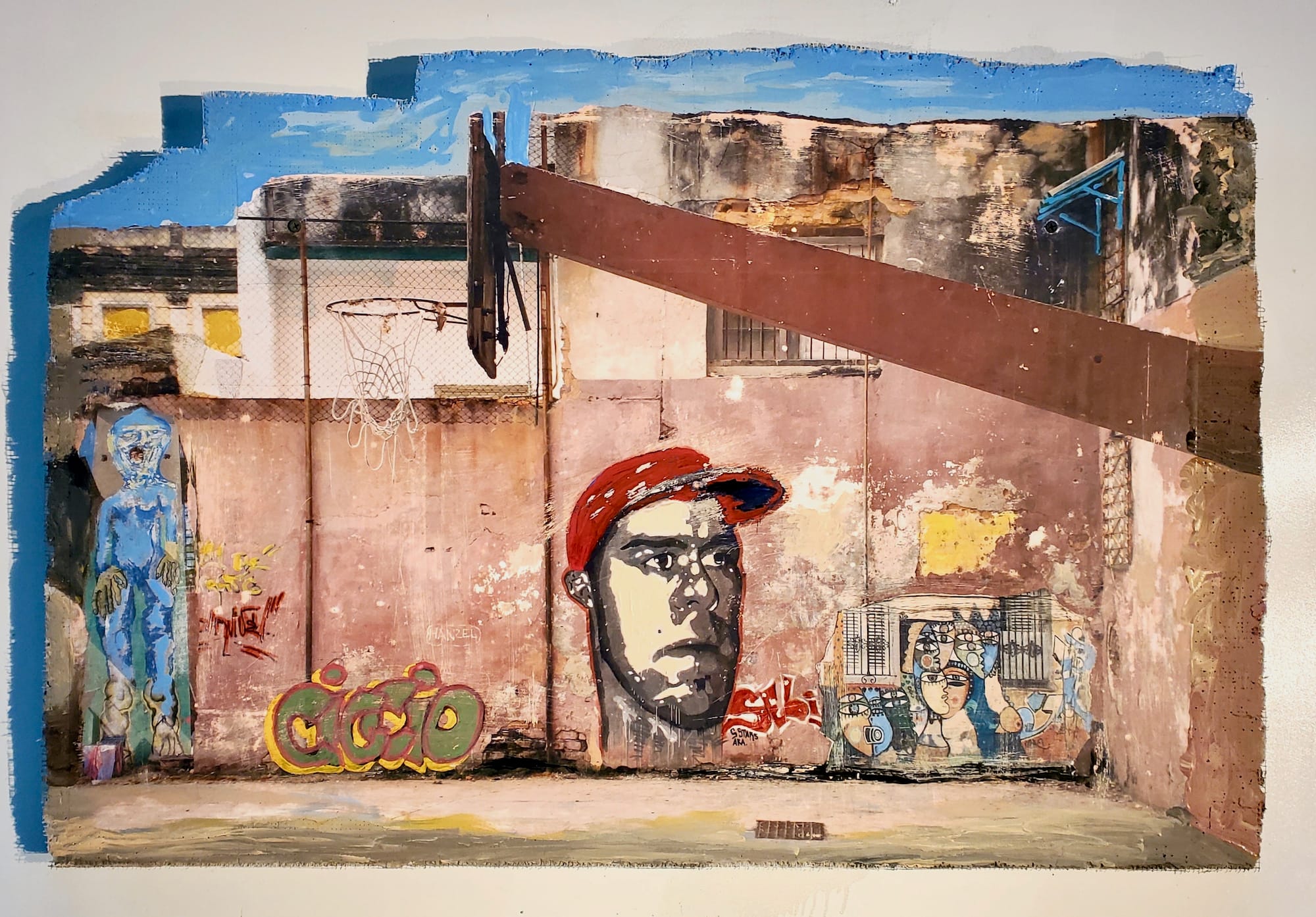 In 1983, Jean-Michel Basquiat commissioned Franc Palaia to paint two small paintings, and later incorporated part of Palaia’s art into his own work. The rest is history, but Palaia, who ran with the downtown crowd in New York City in the ‘80s, is still as active as ever in the arts scene in Upstate New York and beyond. His solo exhibition at Changolife Arts Gallery at the Ethan Cohen KuBe Art Center in Beacon presents a selection of mixed media works that reflect the cultural vibrancy of his visits to Cuba, including layered photographic sculpture-paintings of walls, murals, and street art in Havana and surrounding areas. “Rusty Mural, Havana” (2024) is a terrific example of Palaia’s singular style of cutting, ripping, and sanding photographs and adhering them to angular pieces of sheetrock to create rugged and rebellious multi-media works. Other brightly painted works such as “Astec Mural” (2018) and “Old Woman, JR” (2018) showcase Palaia’s tinkering and layering of photography, paint, spray-paint, oil crayon, wood, and found objects to create dynamic embodiments of Cuba’s raw and sexy splendor.