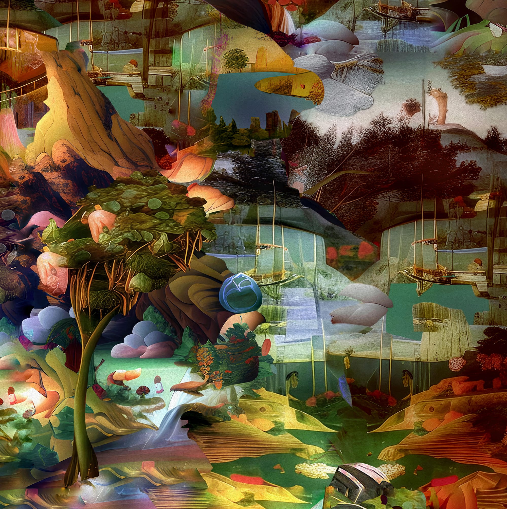 An homage to Martin Luther King, Jr.’s idea that the moral arc of the world “bends toward justice,” this group exhibition celebrates diverse expressions of courage in art. Featuring 25 artists working in a range of media, from sculpture to digital art, their creativity is abundant and bright. “A New Dawn” (2025) by Carol Bouyoucos captures a Willy Wonka-esque world of melting organic shapes and vibrant colors, while James Nazz’s “Golden Egg Molten #1” (c. 1900s) is a cast-iron egg cracked open to reveal its golden guts on a plate. Lili White’s “No Place Like…” (2025) is a mash-up of idiosyncratic imagery, including Dorothy’s glittering ruby shoes, furious flames, and a white stork flapping its wings amid the chaos. And “Kral” (2024) by Ivan Pazlamatchev is a loving portrait of a child wearing a seafoam-colored crown against the backdrop of a faded church interior.