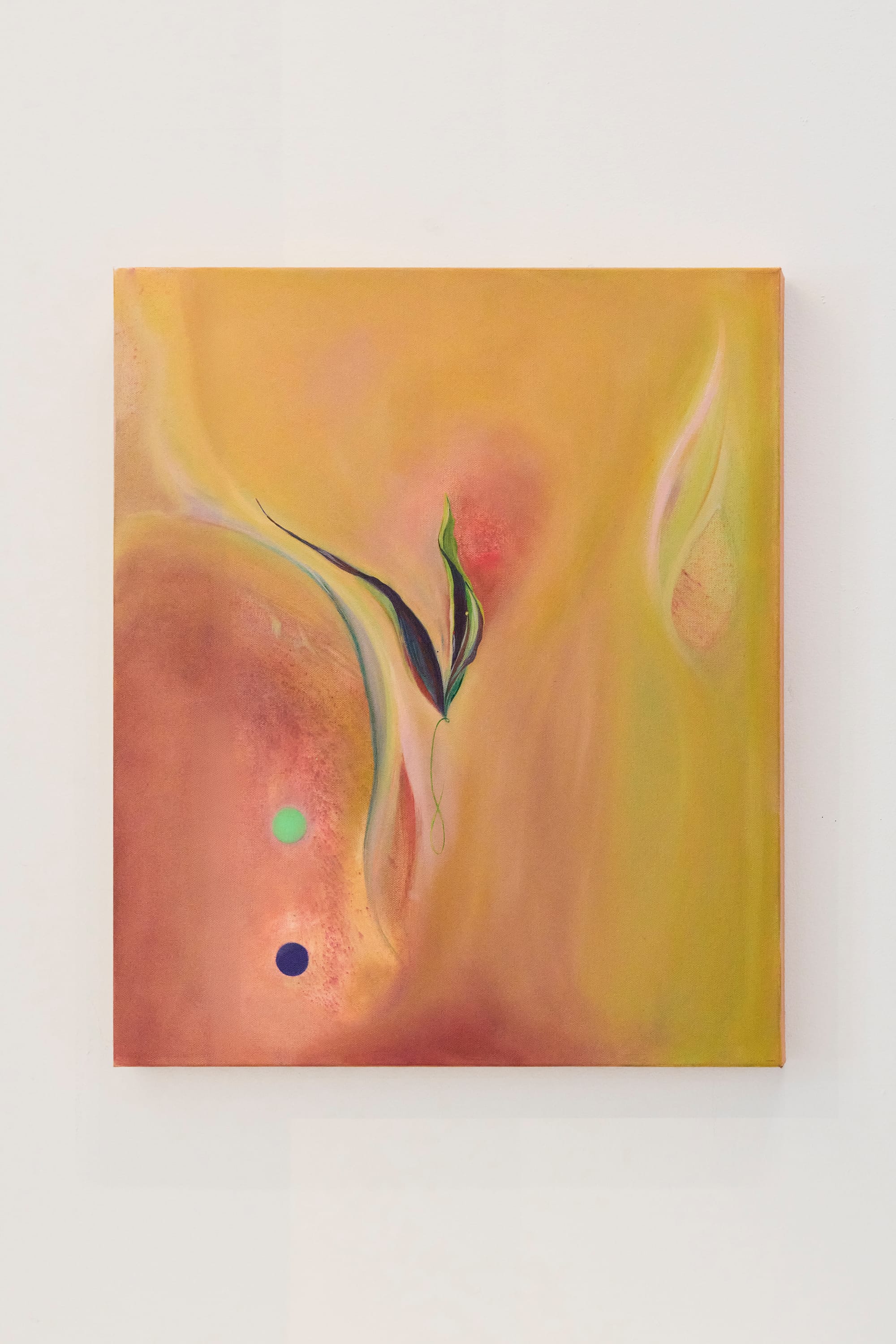 I first encountered Kim Tateo’s bright, ethereal style in the form of a DayGlo-tinted public mural installation in Troy, and I have been a devotee of her work since. Into the Wellspring at Context Collective presents a series of recent abstract paintings by Tateo, each one an atmospheric chapter within her mystical story. “enigma” (all works 2025) contains blue and purple floral streaks that writhe within a realm of ruddy red, while “miracle” is a graceful ochre-hued field with three dark shapes that anchor a morphing universe. “a fleeting moment” recalls Georgia O’Keeffe’s sensual and cavernous painterly compositions, while the vibrant green energy of “november is always around the corner” reflects the perennial excitement of the warmer seasons ahead.