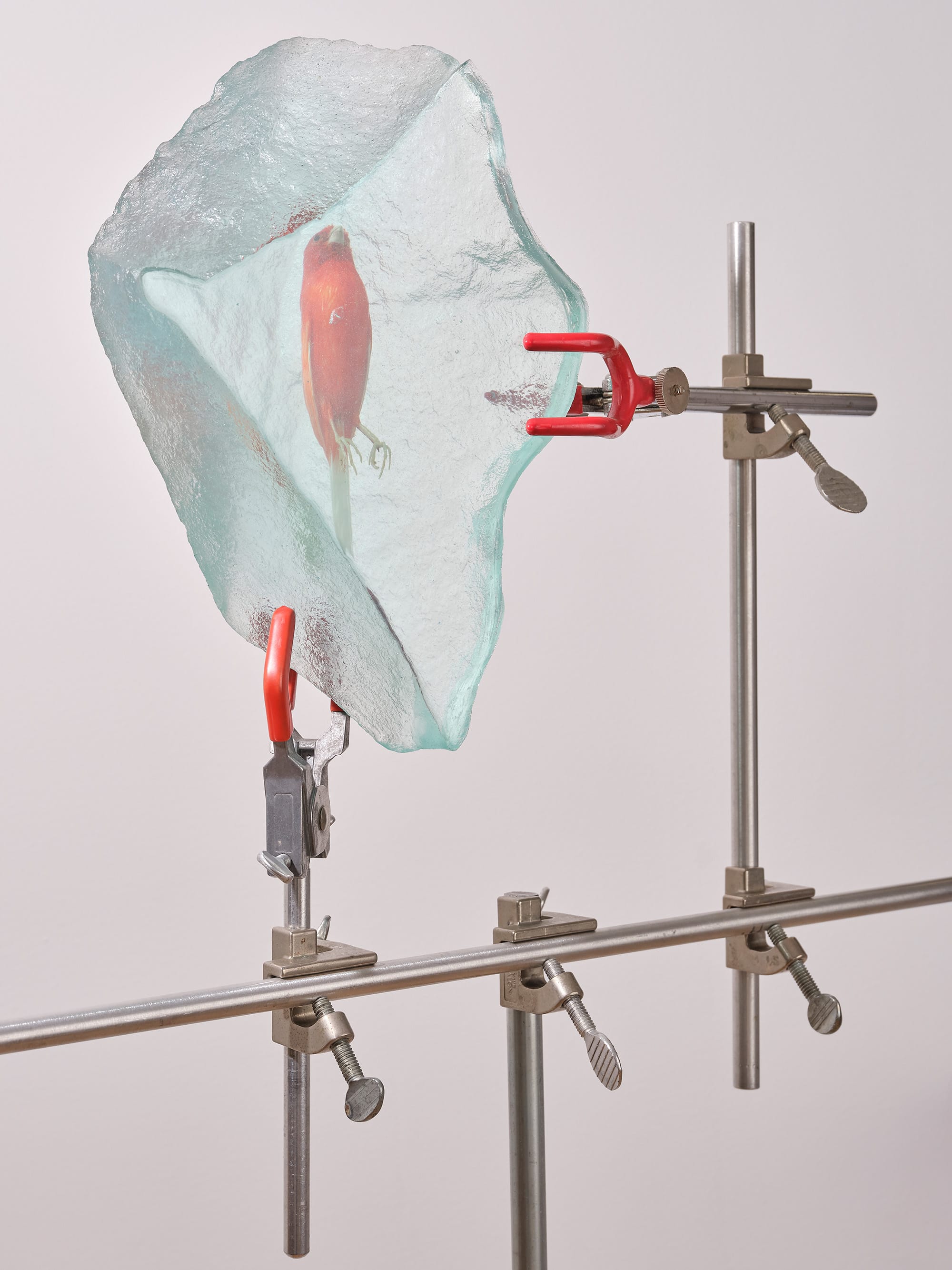 Originally established in 1971, Catskill Art Space in Livingston Manor provides year-round exhibitions, performances, classes, lectures, and screenings alongside long-term installations of artworks by James Turrell and Sol LeWitt. The current three-person exhibition Hovey Brock, Daniella Dooling, Valerie Hegarty presents a series of sculptural works and installations that explore themes of destruction and chaos related to our changing environment. Artworks that appear physically mangled and emotionally messy invite us to embrace feelings of disorientation and fear in a world beyond repair. In Daniella Dooling’s sculpture “Canary Red I” (2023), for example, a red Italian taxidermied canary is cast in transparent resin and suspended by a tripodal contraption that consists of stainless steel and snare drum. Embalmed in artificial fossilization, this tiny bird is simultaneously an artwork and a harbinger: a canary in a climate crisis. On the April 27 closing date, the artists will participate in an Earth Day-inspired afternoon symposium to discuss their artistic practices in relation to the global climate crisis.