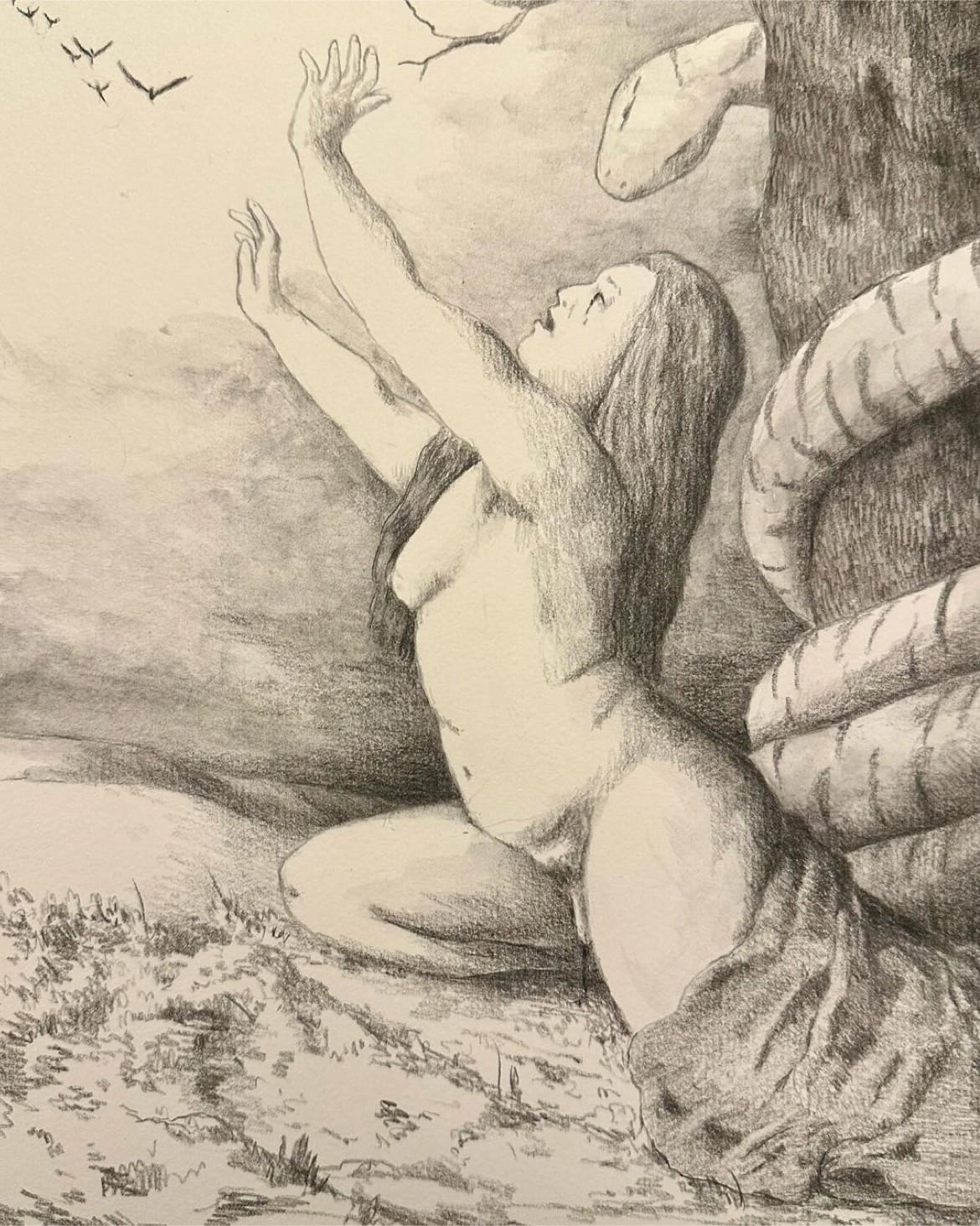 Two concurrent exhibitions at LABspace in Hillsdale maximize this cozy space with wild artworks by two women artists. With a touch of Goya and a dash of William Blake, the visuality of Pearl Cowan’s Metamorphosis features dramatic graphite drawings of figures ensconced in atypical dreamscapes, an ancient, mythological realm wherein trans people claim their powers of resistance and expression. Works such as “Trans Girl Being Abandoned By Angels” (2023), in which a weeping figure reaches up to the heavens as a large snake wrapped around a nearby tree bears witness, encapsulate Cowan’s self-styled world of allegory and alchemy. In the adjacent room, we encounter Susan Still Scott’s exhibition Arrows in my Quiver, which includes a series of constructed paintings that embody the blending of abstract traditions with the three-dimensional potential of sculpture. Scott’s multi-layered works such as “Animal Object” (2023), a bright painted-wood and collage sculpture resembling an abstract creature, inspire us to consider how the materiality of art can disclose personal narratives in unanticipated ways.