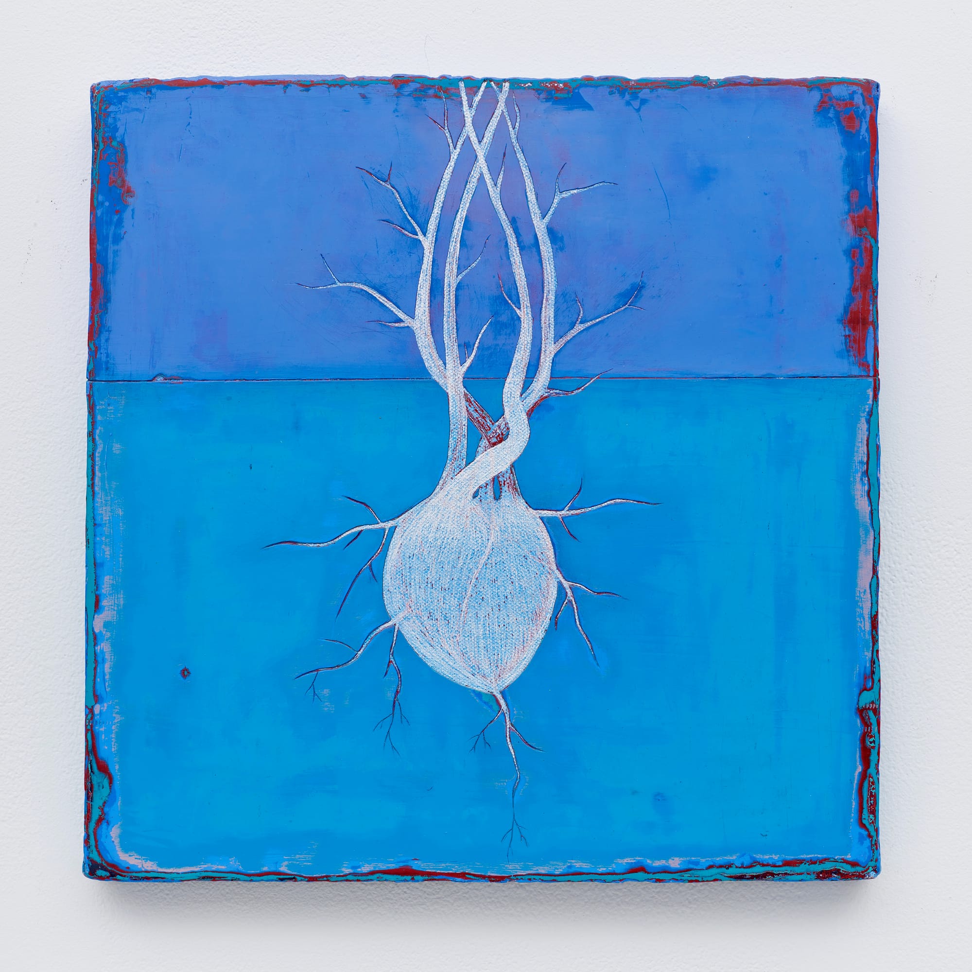 Davina Hsu’s creative practice is an exquisite embodiment of uplifting metaphysical and esoteric sensibilities. Heaven on Earth presents a series of recent works consisting of natural wools on foam; the six colorful pieces in this show seem to hum together in some ethereal harmony. “The Shift” (all works 2025) features a rainbow quasi-landscape in the middle with a turquoise border all around, while “Adored” recalls a slice of a stained-glass window. Hsu’s elegant series culminates with “Inner Temple,” a vertical work with pink, yellow, and neon greenish tones that vibrate with an energy that is simultaneously graphic, organic, and mystical.