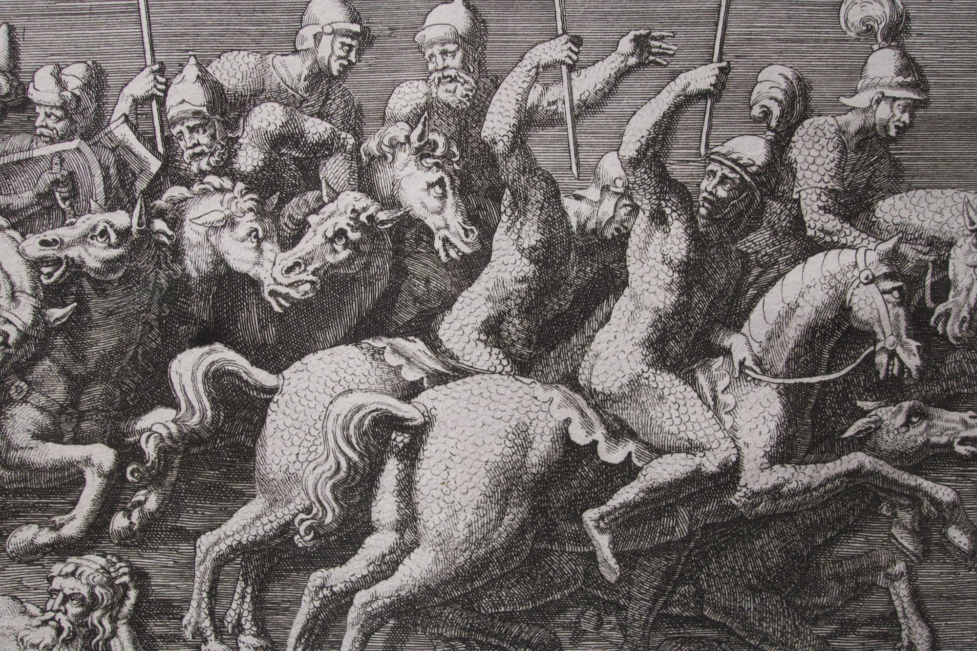 Very little is known about 17th-century French artist Antoinette Bouzonnet-Stella apart from her association with her family’s workshop, where she worked alongside her siblings, and which is currently housed within the Louvre Museum in Paris. We can piece together that she assisted her maternal uncle, the painter and printmaker Jacques Stella, in creating print reproductions of his paintings. By the time her life was cut short at 35, however, she had evidently become a distinguished engraver in her own right. In 1675, she received a commission from Jean-Baptiste Colbert, advisor to King Louis XIV and vice-protector of the Royal Academy of Painting and Sculpture, who sought to utilize her work to promote a “French style” rooted in classical art. The result was a series of 25 prints titled The Entrance of the Emperor Sigismond into Mantua (1675/1787), reproducing Giulio Romano’s Renaissance frieze for the Palazzo Te in Mantua, Italy. Those prints, now on display at the National Museum of Women in the Arts, bear witness to the existence of numerous female masters whose names are yet to be recognized. The engravings themselves are exquisite, depicting what seems to be a triumphant parade after a hard-won victory. But look closer, and the details reveal another narrative: The horrors of war are etched on the faces of enslaved women and children, as well as animals including horses, camels, bulls, and even a ram and a wild boar.