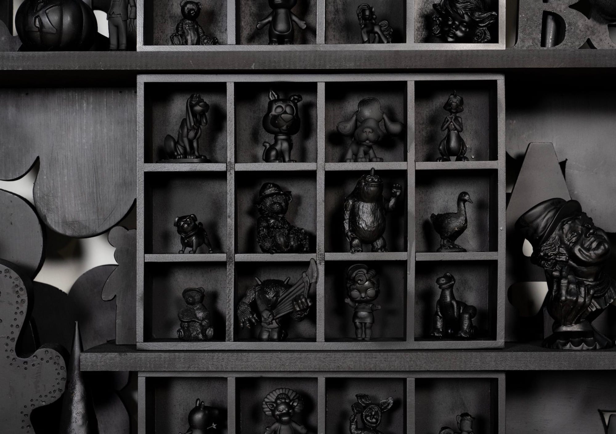 Combine two artists infamous for their grotesque aesthetics in a commercial setting, and you get Too Little Too Late. Dinos Chapman creates colorful and brutal fantasies with modified mannequin parts, zombie-esque monsters on pillars swinging baseball bats, and a life-size androgynous child staring at themself and the exhibition through a large mirror. Jason Yates’s work surrounds this nightmare with assemblages straight out of a post-apocalyptic lost and found, including cans of food, wind chimes, and prefabricated signs. The two artists share an interest in disturbed Americana: If Chapman tries to disguise his vision as the product of a child’s imagination, Yates returns the viewer to an unmistakably adult reality.