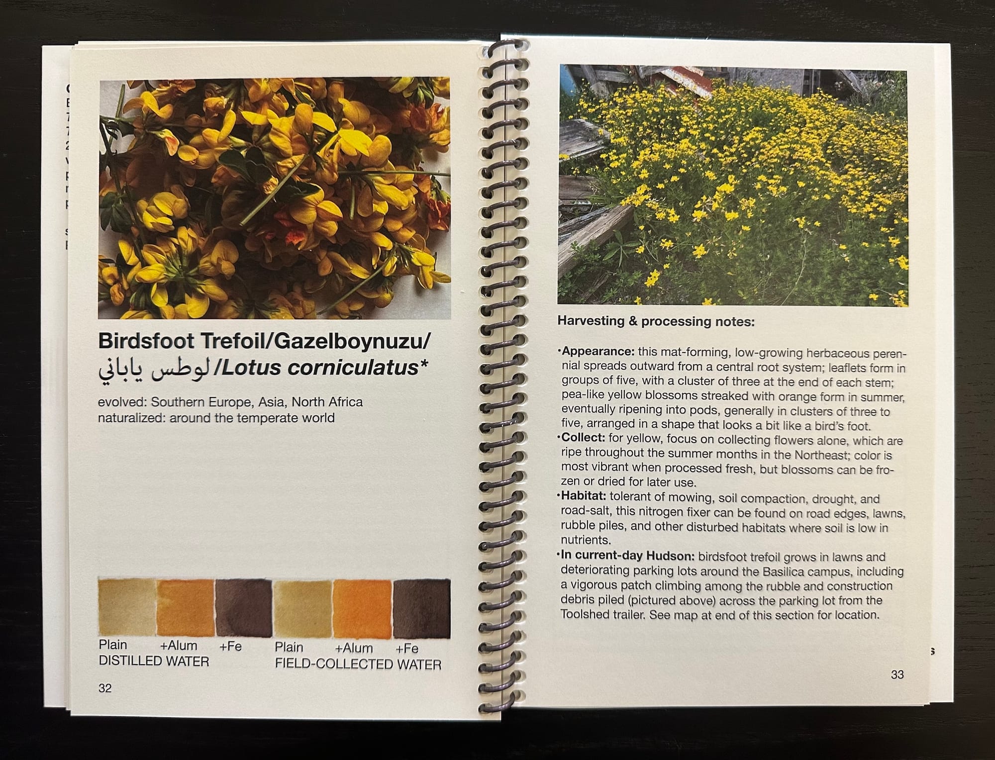 EI: I've always worked with themes of ecology, interconnection, and the burdens that certain resource-intensive, extractive human lifestyles place on the planet and her living systems. I turned to working with living materials harvested from the urban landscape after I moved from Los Angeles to New York City in the mid-2000s, and found myself feeling buried in the so-called "concrete jungle." I was a more conventional painter at that time, working large-scale with acrylic and watercolor paint, and I found myself painting an increasingly claustrophobic series of dark caves inhabited by surreal, almost alien flora and fauna. It felt like a dead end, and connecting with weedy life — the literal plants emerging from the sidewalk cracks outside my Hell's Kitchen studio — was a revelation, and I think saved me as a painter. It gave me a way to connect the fieldwork side of ecology — which I've always loved — with my studio practice, and the object-making aspect of my work with seasonal shifts and rhythms. As I started developing the practice, other folks started asking how it was done, and soon enough my relatively solo studio-based practice had become a socially engaged, walk- and workshop-based practice that was deeply connected to land and place, which gave me a whole new set of concerns and interest to interrogate as I learned about the complex histories and fraught presents of many of the weedy species that thrive in urban spaces, and the humans they are in relation to.