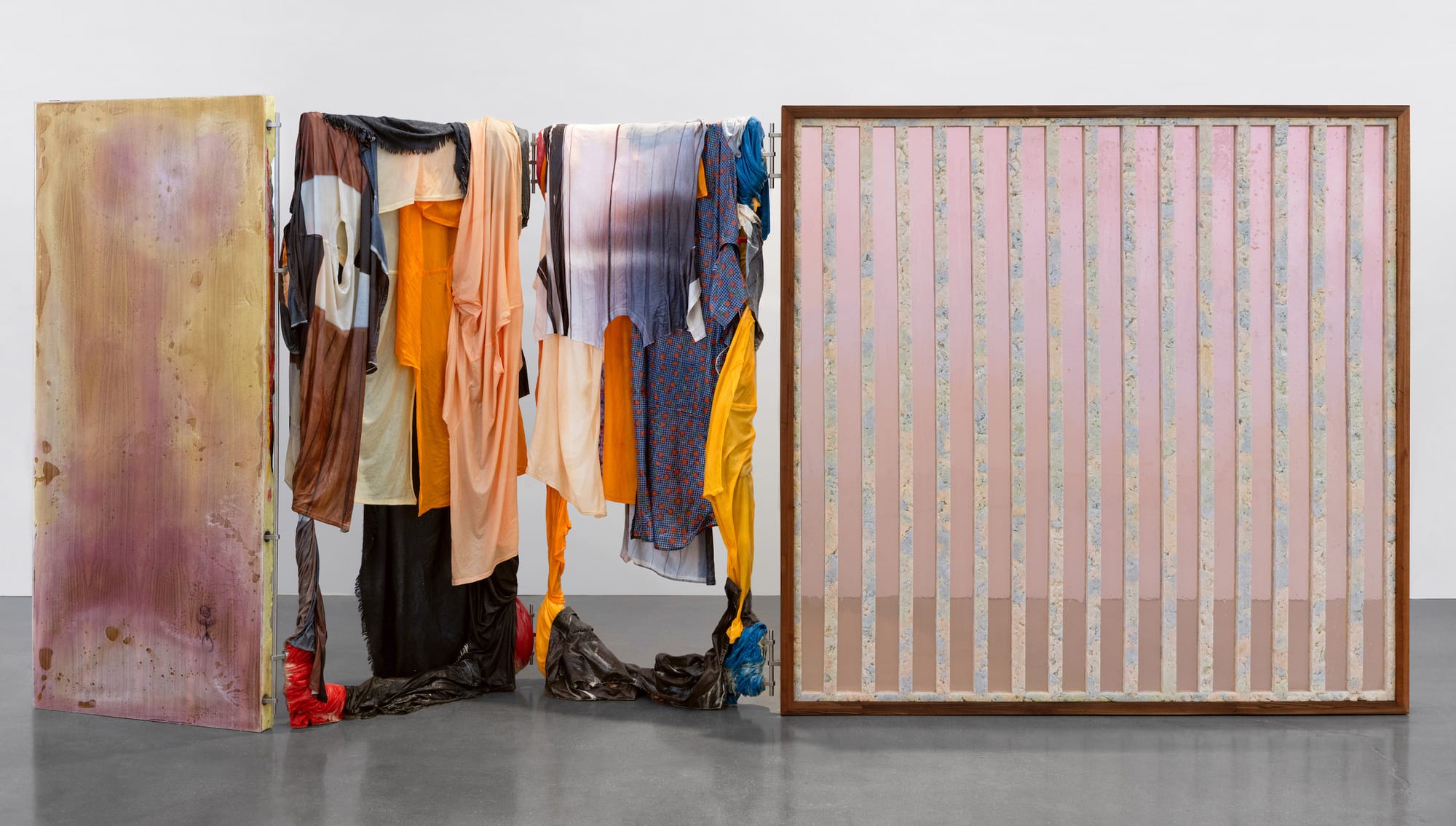 Kevin Beasley is known for his unique use of resin that transforms commonplace items into translucent abstractions. What delineates the edge highlights two new bodies of work: freestanding screens and wall-mounted panels. The screens incorporate textiles, garments, wood, steel, and resin, creating sculptural compositions of color, light, and texture imbued with human presence. The wall works, dubbed Synths, similarly feature items with specific and universal resonances embedded within resin supports. Their title references the manner in which synthesizers translate unintelligible electronic code into accessible sonic output.