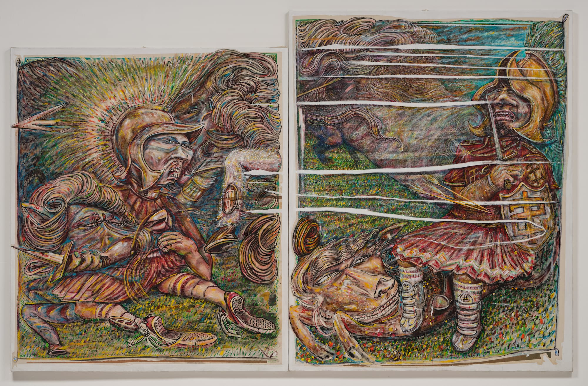 Raul Baltazar's expressive paintings draw on everything from Spanish colonization of the Americas and Aztec mythology to autobiographical scenes of his LA neighborhood, domestic life, and creative community. Embodying the persona of Tochtli, the Aztec a trickster coyote dressed as a rabbit, Baltazar uses humor, wit, and parody to challenge systems of oppression whose historical chains stretch back centuries. With a nod to Spanish Baroque art and Indigenous imagery, Baltazar's work is firmly rooted in the here and now.