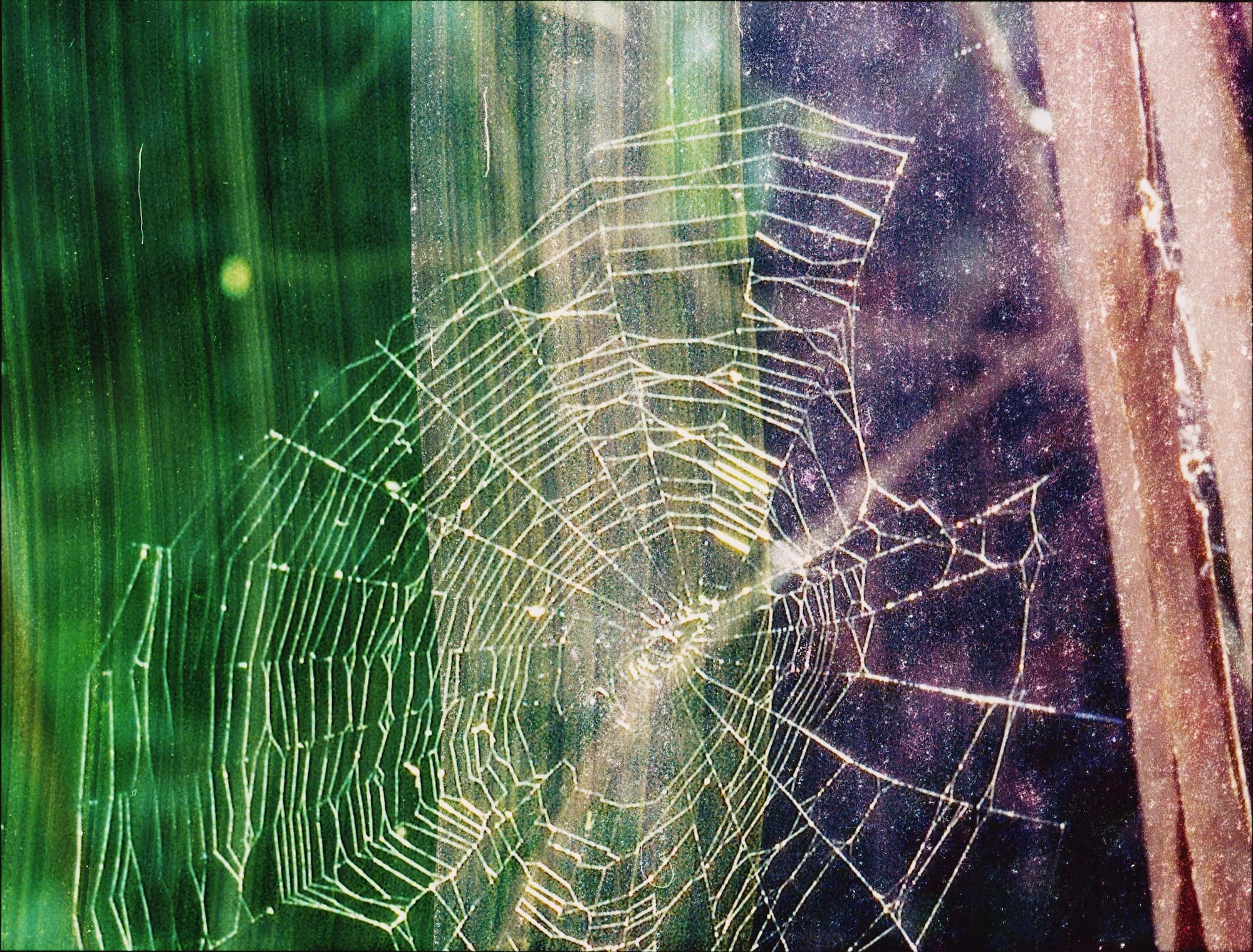 Media artist Jennifer West's process is defiantly analog, treating celluloid film stock as raw material that she has dragged through tar, doused in whiskey, or taped to the High Line in New York and inviting the public to leave their marks, as with One Mile Film (2012). Space Webs, her current exhibition at Gattopardo's new gallery space in Glendale, takes its inspiration from the delicate webs of the orb-weaver spider and the expansive constellations and nebulae of space. Working with arachnoid and cosmological footage painted with silk fabric dyes, she has sewn film strips into cinematic quilts, transferred images onto holographic fans, and created an installation of flat-screen monitors that spill from the wall onto the floor like a waterfall.