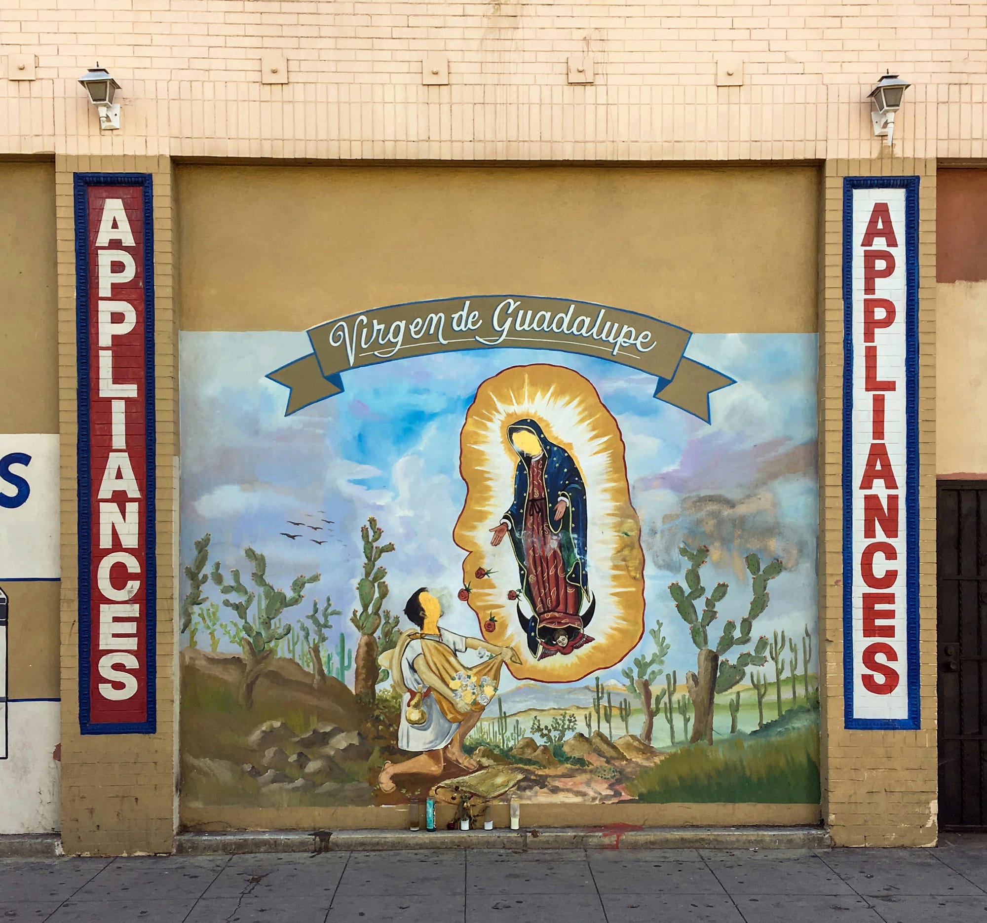 According to the legend, a vision of the Virgin Mary appeared to a Chichimec peasant named Juan Diego Cuauhtlatoatzin on the outskirts of Mexico City in December of 1531, ushering in the spread of Catholicism throughout present-day North and South America. The Virgen de Guadalupe, as she is known, is revered by Catholics across Latin America but also stands as a symbol of cultural pride for many Mexican Americans. Her image can be found on street murals, mosaics, and family shrines all over Los Angeles (which was originally named in her honor as "El Pueblo de Nuestra Señora la Reina de los Ángeles del Río Porciúncula"). For over a decade, photographer and librarian Nydya Mora has been documenting these public manifestations, now brought together in Reina de Los Angeles. Her images chronicle individual expressions of piety and honor that are deeply embedded in the fabric of the city.