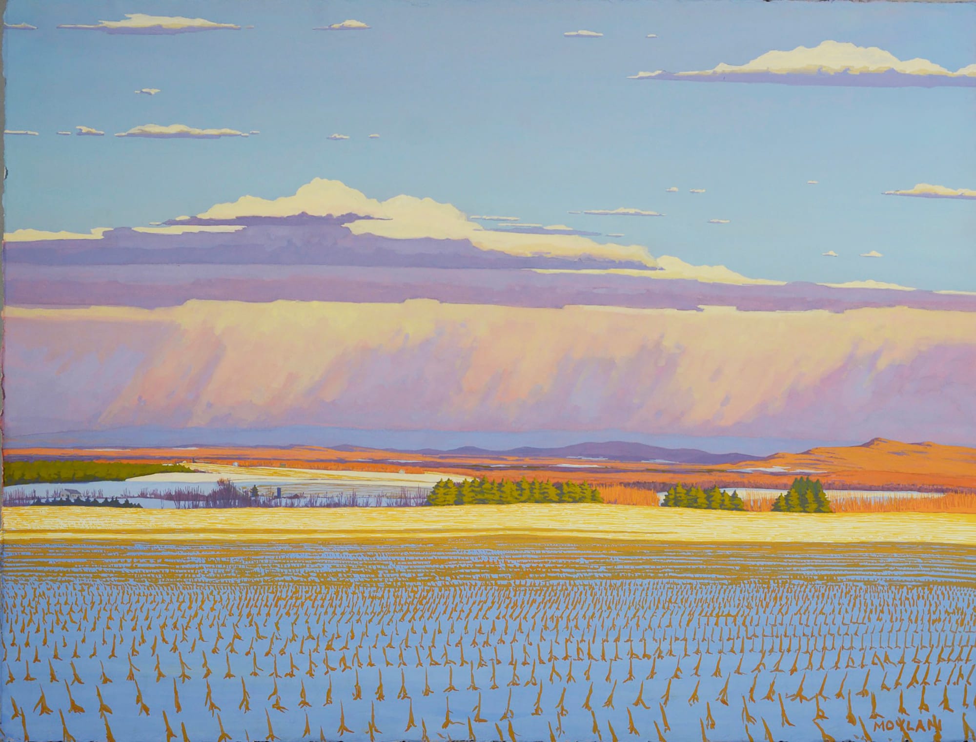 The natural bounty of the Hudson Valley is especially inspiring for visual artists. Earth Endures, Stars Abide at Carrie Haddad Gallery celebrates the region with recent works by five gallery artists who center the landscape. Robert Moylan’s “Snow Squall” (2025) is a purple-tinted vision of a perfectly gorgeous winter morning, while “The Day of the Blues” (2025) by Tracy Helgeson showcases a blazing red barn against a blue hill and sky. James Bleecker’s “Hudson River at Staatsburg” (2025)is a sultry pigment print on watercolor paper that feels like the moody setting of a gothic novel.
