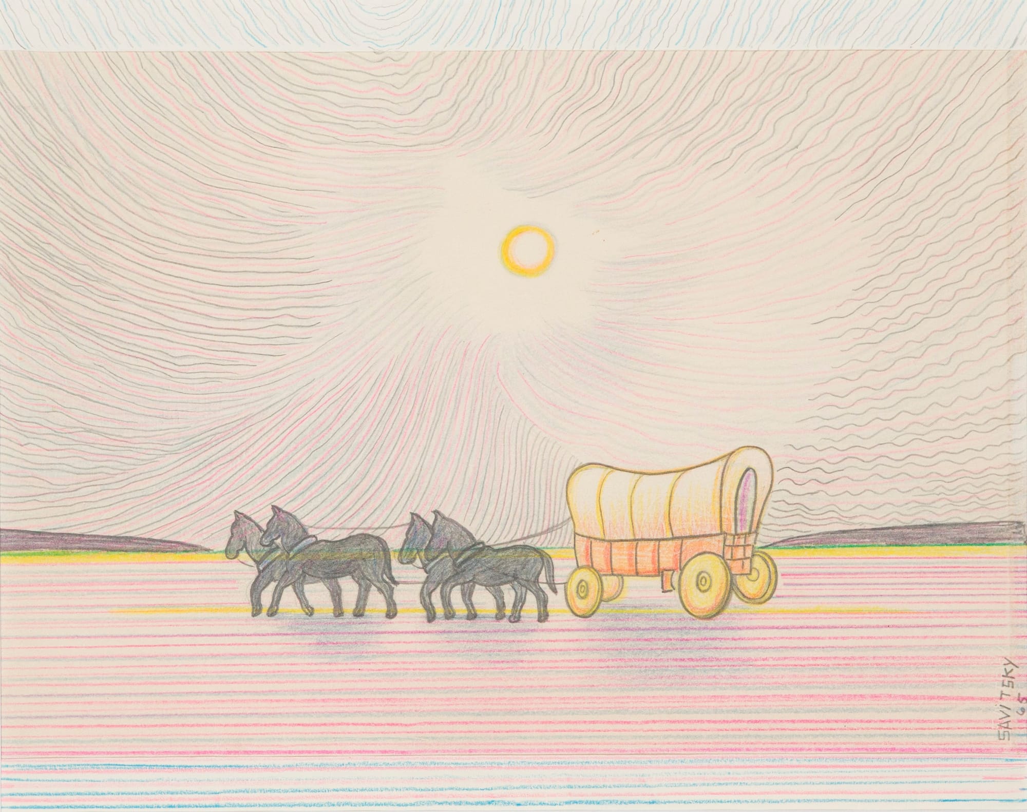 An homage to Pennsylvania’s cultural identity, Pennsylvania Folk at the Ruffed Grouse Gallery presents the work of four self-taught artists who hail from that great state. Works by Lilian Kilpatrick Rheuban reflect her sensitive focus on the quotidian, including “My Brass Bed” (1978), a vibrant yellow-hued image of a tidy bedroom that beckons us to stay and rest awhile. Horses seem to be a theme: Charles Dieter’s “Wild Horses” (1985) features a group of faceless pink versions of the animal who gallop furiously in a green field above smiling bunnies, while Jack Savitsky’s “Covered Wagon and Horses” (1965) is an image of four black stallions pulling a caravan against a bright landscape. Pauline Zimmerman’s “Enjoying Quilting” (2019), meanwhile, embodies the “folk” part of the exhibition title — it is a lush watercolor of a woman finding happiness in that simple and sacred activity.