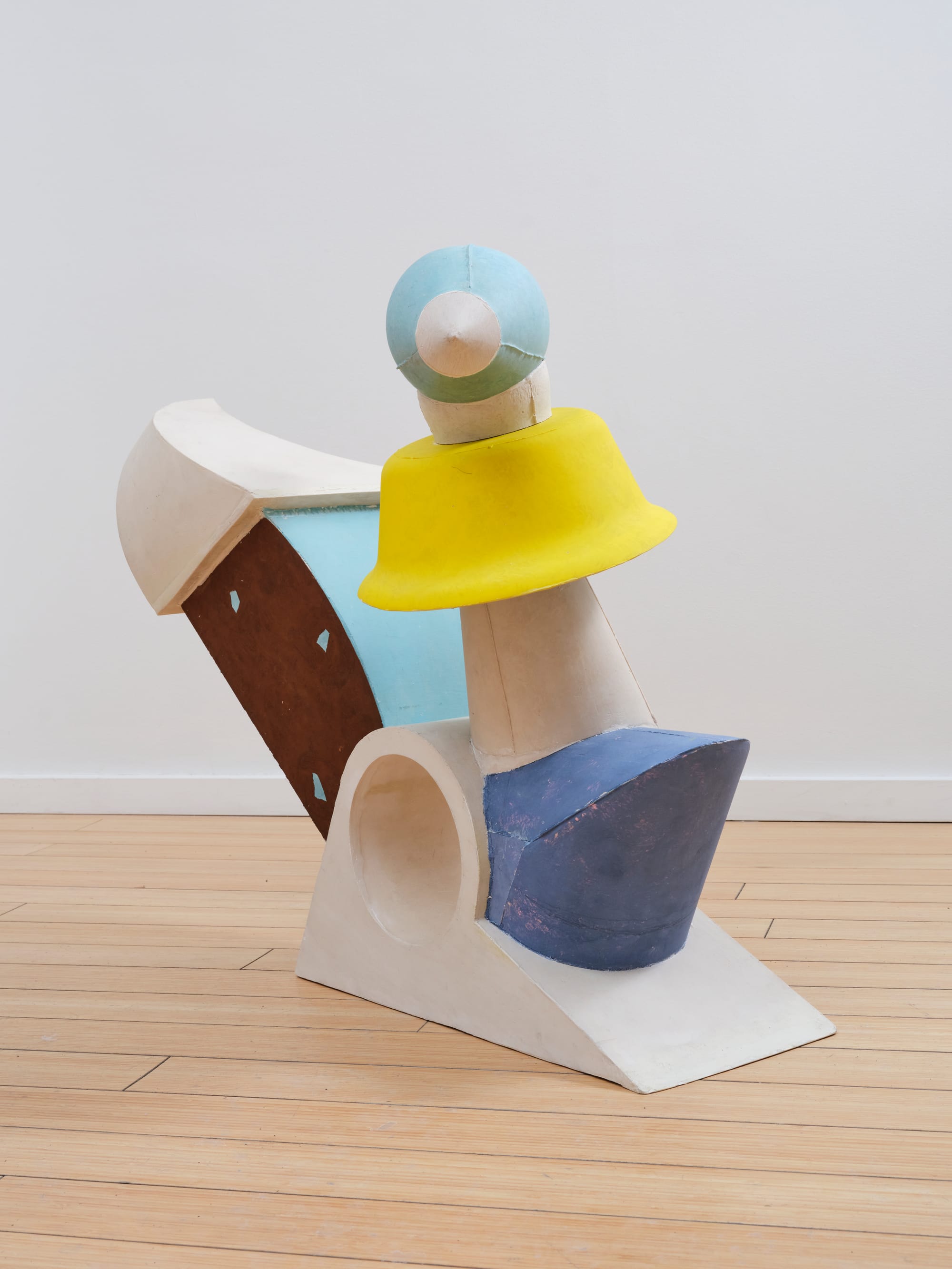 Among the great trios of Hindu iconography are Brahma (creator), Vishnu (preserver), and Shiva (destroyer), and their colorful incarnations offer timeless insights into the true nature of reality. At Catskill Art Space in Livingston Manor, Rand Hardy, Lisa Hoke, and Buzz Spector explore playful modes of creation, preservation, and destruction through a series of mixed-media installations and sculptures. Hardy’s Aqua-Resin “Scribbler” (2024) and “Ta Ta Tati” (2024) suggest the creation stage with their quasi-phallic protruding shapes and delightful nonsensical form. Spector’s “About the Author” (2014), which consists of photos and text on museum board, and “Frieze” (2025), a row of dust jackets installed gracefully in a horizontal line across the wall, are about the preservation of the past. And Hoke’s beautifully chaotic “Lady Liberty” (2025) and “Pop” (2024) installations revel in destroyed materials, transforming recycled packaging and disposable ephemera into spinning and twisting shapes that dance as they cascade down the wall, bringing the conversation full circle to creation.