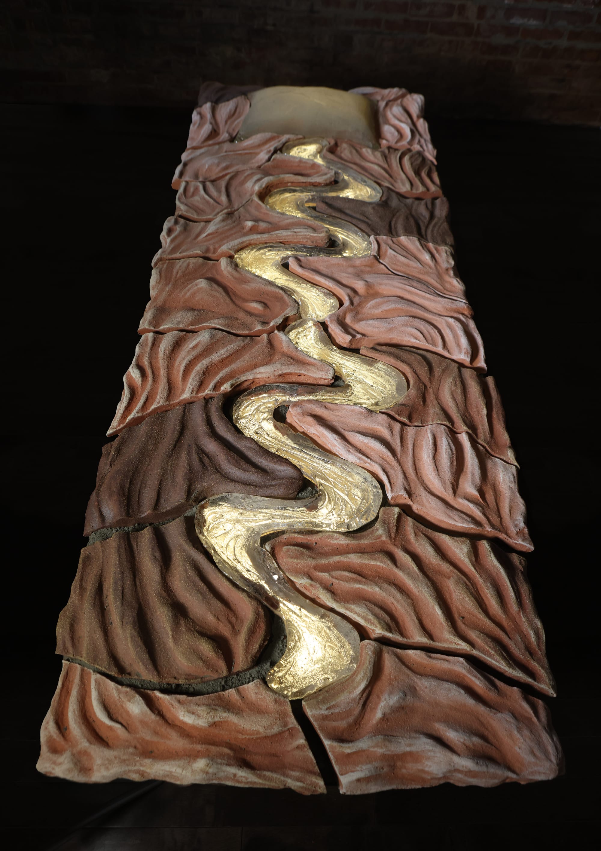 One theory holds that the universe is held in place by opposing binaries — where there is form, then, there is always formlessness. Joan Harmon’s exhibition at Garner Arts Center in Garnerville seems to toggle between these two states with a series of glass pieces and charcoal works on paper that morph between free-form and fully formed. “Streambed” (2024), a ceramic, cast glass, wood, and emitted light work that recalls a bed of undulating red clay with a fiery gold stream running right through the middle, is both tomb-like and fairytale-esque. “Lighted Footpath” (2024) feels like another chapter from the same narrative of wandering some far-flung world, featuring a quarter-circle of strung-together glass feet lit from below atop a pile of crushed basalt. And while the sci-fi blue-hued “Bouton Cluster” (2024), a hand-blown glass object, seems to wrangle with its own strange shape, Harmon’s glowing “Glass Brain” (2020) is just the reminder that consciousness is the ultimate formless power.