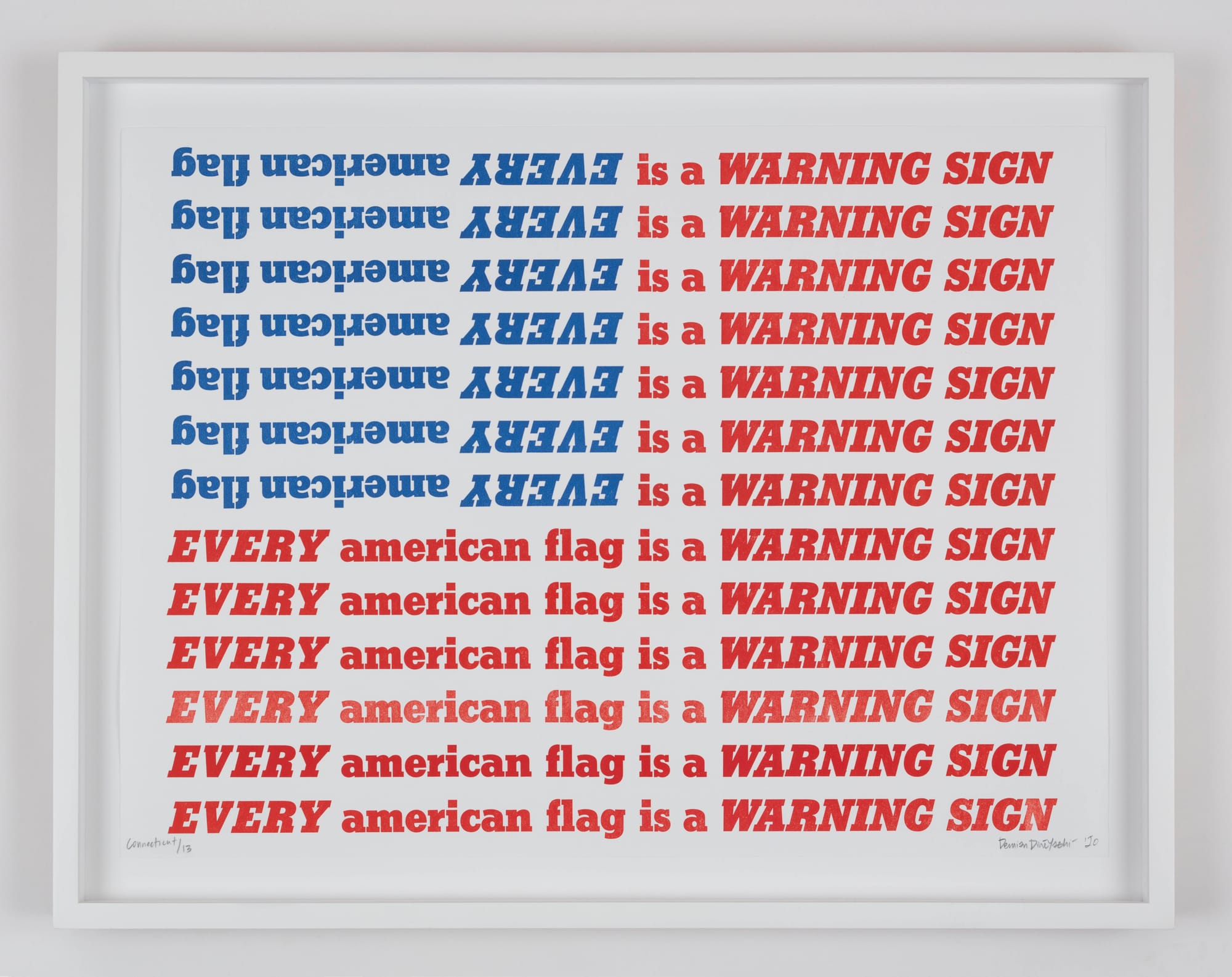 History Lessons at the University Art Museum in Albany presents works by 15 artists working from the 1960s to the present, including deceased greats such as Louise Nevelson and powerhouse contemporary figures such as Glenn Ligon. This mixed-media exhibition considers counternarratives that reposition the past and promote activism and education as fundamental to the health of society today. “AIDS (Marcus Garvey)” (1991) by General Idea — the collective project of Canadian artists Jorge Zontal, AA Bronson, and Felix Partz — is a bold reconfiguration of Robert Indiana’s “LOVE” (first created in 1964) and a poignant reminder of the once-crippling epidemic that ravaged queer communities (and claimed the lives of Zontal and Partz). “my ancestors will not let me forget this” (2020) by Demian DinéYazhi’ is a powerful text-based vision of an American flag that reads “EVERY american [sic] flag is a WARNING SIGN,” which is all the more chilling during our current political climate. Jeffrey Gibson’s “SHE KNOWS OTHER WORLDS” (2019) is a gorgeous example of his signature blending of geometric compositions and patterned beadwork to create punchy graphic visuals. And Hock E Aye Vi Edgar Heap of Birds’s “Sweetheart Songs” (2017–18), consisting of 24 monoprints with white text against shades of crimson, brings a smile with saccharine statements such as “hold me tight in your arms dear” and “no matter where you are I love you.”