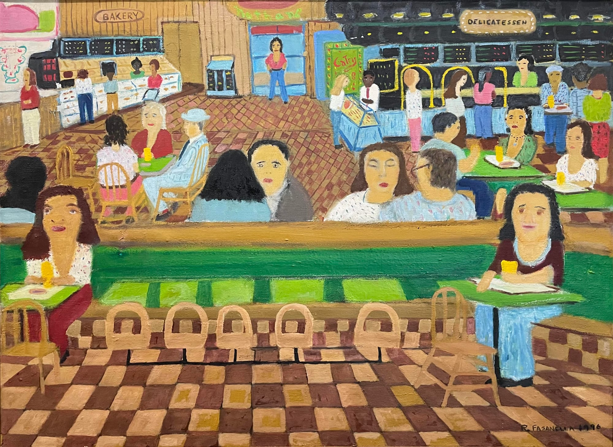 Ruffed Grouse Gallery is showing six decades of the work of Ralph Fasanella, an artist who dropped out of school to work on his father’s ice truck (among other odd jobs) before devoting his life to painting. His “Night Nude” (1947) a domestic psychological composition slightly reminiscent of Matisse’s “The Red Studio” from 1911, features a naked red woman lying stiff on a red tabletop (or is it a bed?) in a domestic scene overpowered by the hulking red lamp to the right. “Nathans with Bakery” (1996) depicts love for community in the form of motley humans snacking together in a cafeteria environment. Fasanella’s work will be featured at the Ruffed Grouse Gallery’s booth at the Outsider Art Fair in New York City later this month, giving art lovers on both ends of the Hudson River a chance to encounter this self-taught ace.