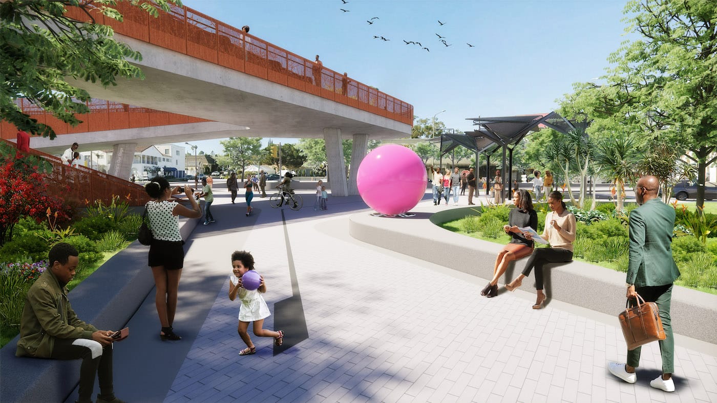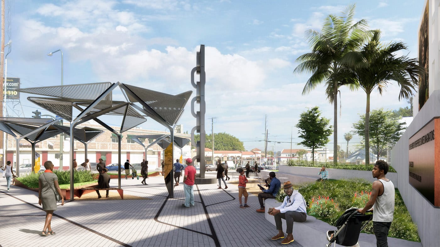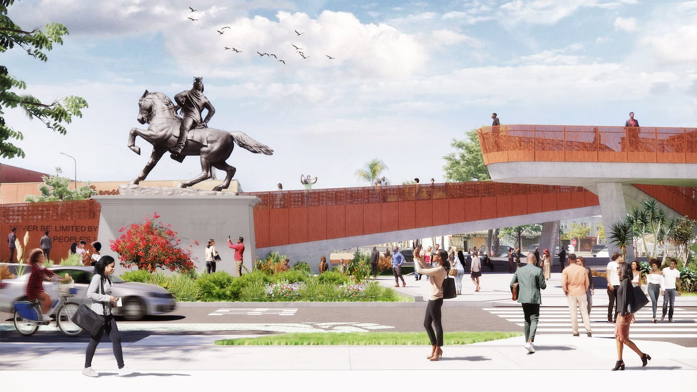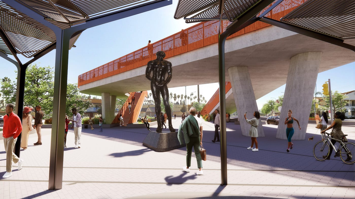 Launched in 2017, the $100 million initiative aims to redesign a stretch of Crenshaw Boulevard from Vernon to Slauson, a major hub of Los Angeles’s African-American community in South Los Angeles. Spearheaded by Marqueece Harris-Dawson, LA City Councilmember for District 8, it includes a wide range of arts and community leaders among its advisors and stakeholders such as Naima Keith, the vice president of Education and Public Programs at the Los Angeles County Museum of Art; gardener and activist Ron Finley; jill moniz, curator and founder of Transformative Arts; and, before his death in 2019, rapper Nipsey Hussle. It has received funding from the city and county, as well as the state of California, and it was recently announced that NBA star DeMar DeRozan would be leading a private fundraising drive. Groundbreaking took place on February 29 2020, and the project is slated to be completed in fall 2022.