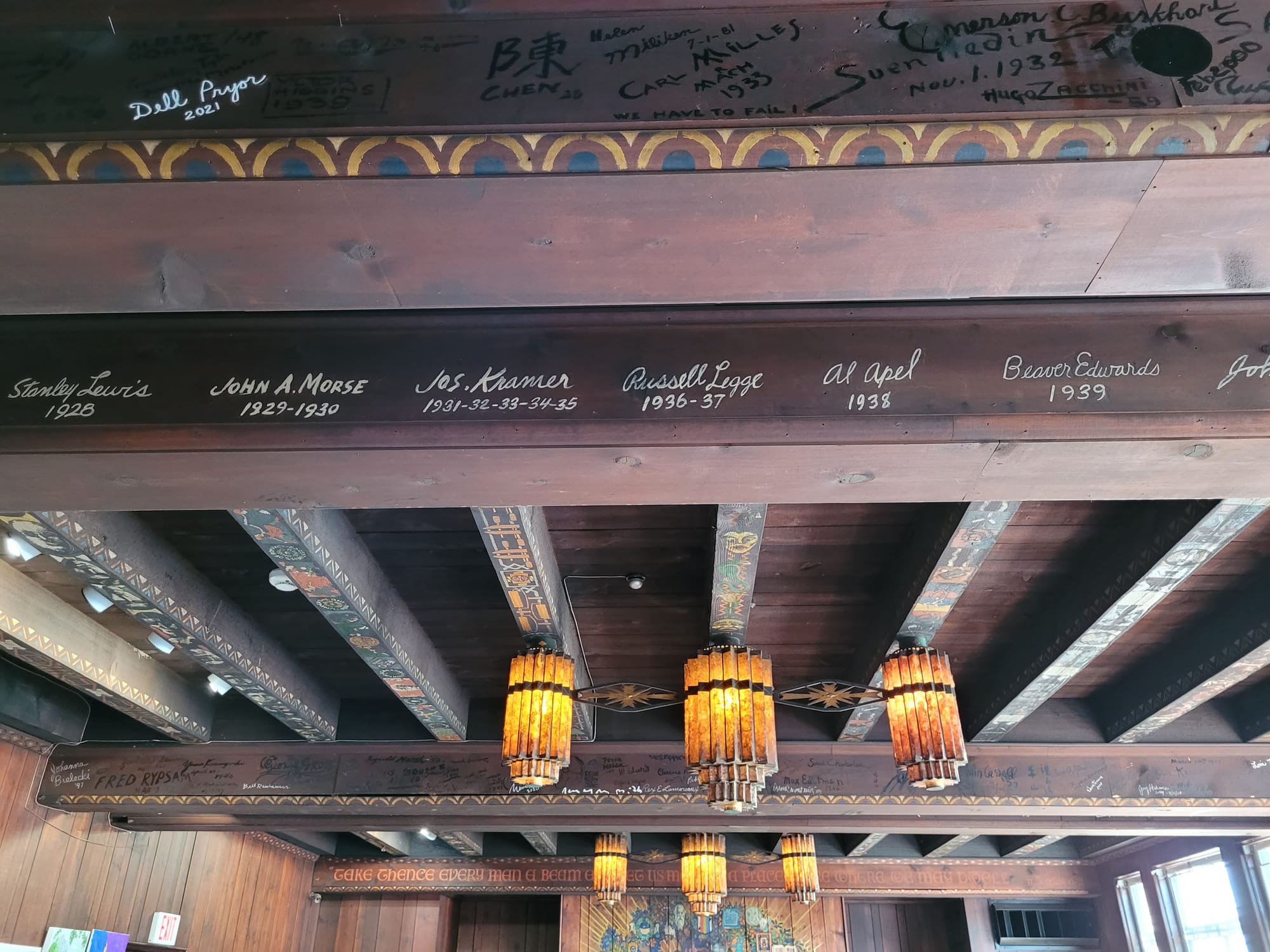 The beams in Detroit's Scarab Club act as a guest book of sorts, carrying a wealth of stories and history, including signatures by Diego Rivera, Marcel Duchamp, Margaret Bourke-White, Isamu Noguchi, and others.