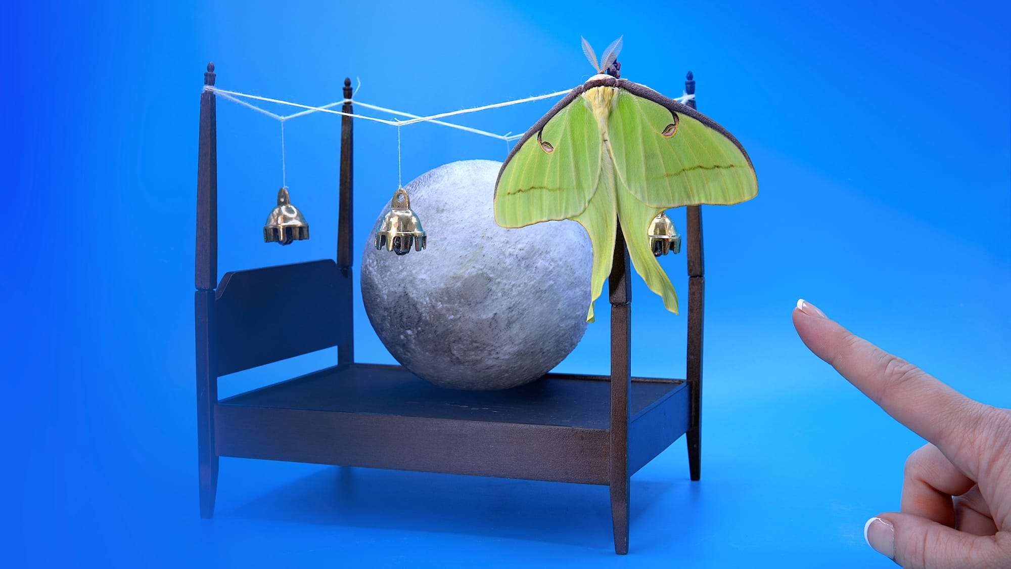 The art ecosystem in Upstate New York is peppered with dynamic gallery spaces, and Elijah Wheat Showroom in Newburgh is among the most exciting in the region. Their latest pair of exhibitions features three artists who explore themes of transformation and intentionality through their diverse projects: Compact, Relaxed, & Intact contains sculptures and a video installation by Millicent Young and Virginia L. Montgomery, respectively, and the solo exhibition Girls at the End of the World includes paintings and other mixed media works by Jessica Hargreaves. Young’s “Sanctuary” (2022) installation speaks to ecological concerns and features clay sculptures and suspended wood strips of charred cedar that hang down from the ceiling. Montgomery’s “Moon Moth Bed” (2024) is a surreal video and sound piece about cycles of rebirth and collective consciousness as experienced through the journey of Luna moths.