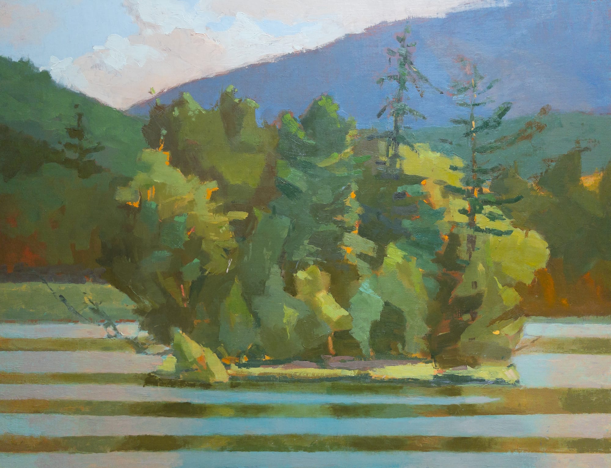 Mother Nature is the supreme muse, and Lisa Diebboll is an unabashed devotee. Her solo show Between Observation and Abstraction at Buster Levi Gallery in Cold Spring presents a series of recent studies and vibrant landscape paintings that extol the natural world at her most glorious. Where densely colored works such as “White Pines” (2024) and “Quarry, View West II” (2024) lean more toward the abstraction side of the equation with their heavier painterly feel, “Chartreuse and Ultramarine Violet Receding” (2025) and “Squirrel Island Assemblage” (2025) beautifully reflect Diebboll’s plein air practice from direct observation. Other works, including “Sculpted Field” (2024), appear to morph from abstract (as seen from up close) to observational (as seen from afar), a curious aspect of all the artworks in this visually rich and soothing show.