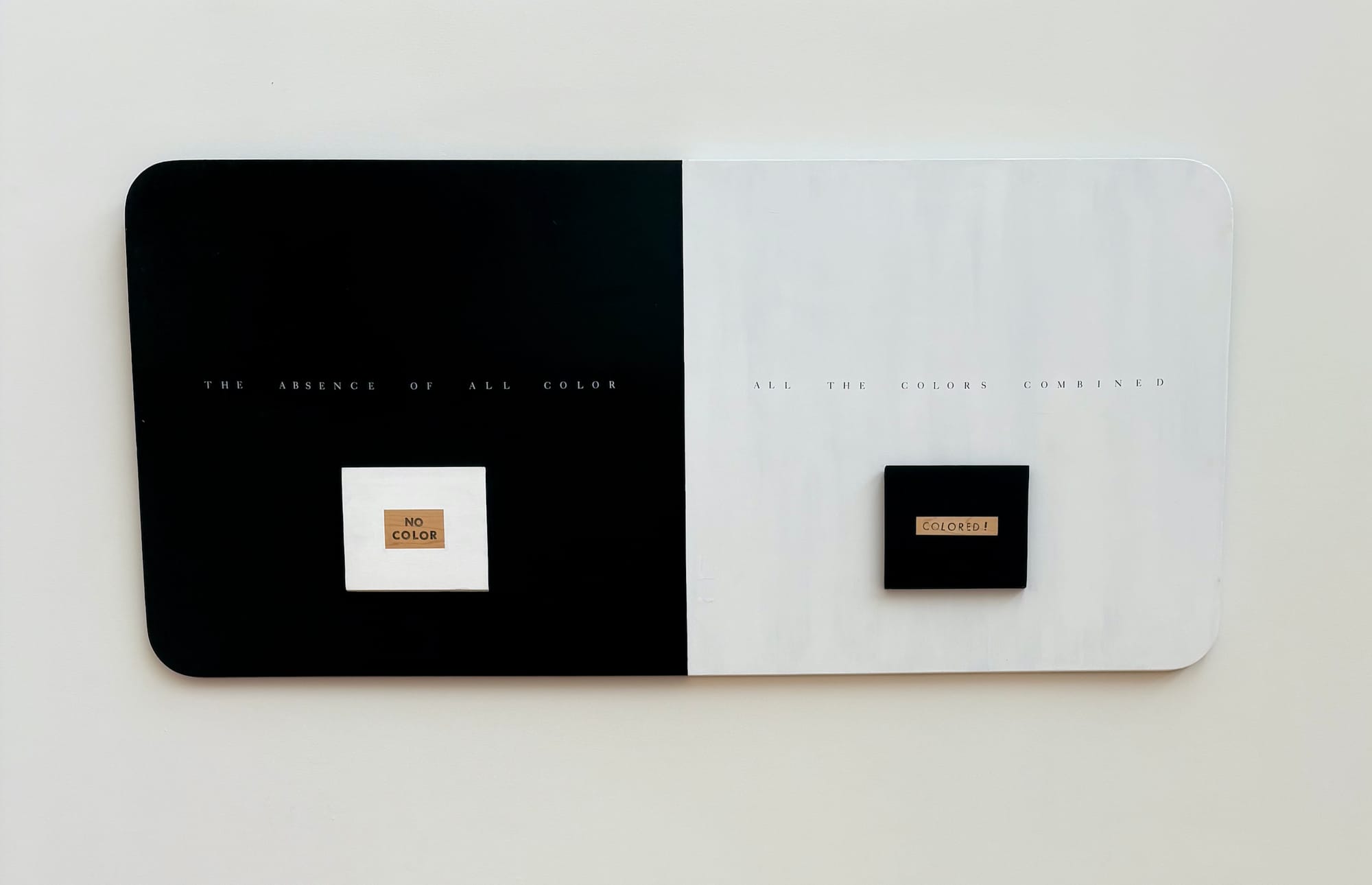 Combining text fragments from literature and other sources, Green employs stylistic typologies to conjure alternative narratives, while using color as a categorization device and words as the building blocks for systems. Green is a master at probing and destabilizing the meaning of meanings, and her painting “Color/No Color” (1990) is a powerful example of this. Divided in half, the left side is black with white lettering that reads “THE ABSENCE OF ALL COLOR” above a small white rectangle that contains the phrase “no colors”; on the right, Green has painted the phrase “ALL THE COLORS COMBINED” in black on a white ground, above a black rectangle with the word "COLORED!" Her exploration of issues surrounding race, identity, and representation through her singular “text-ercises” are both graceful and forthright.