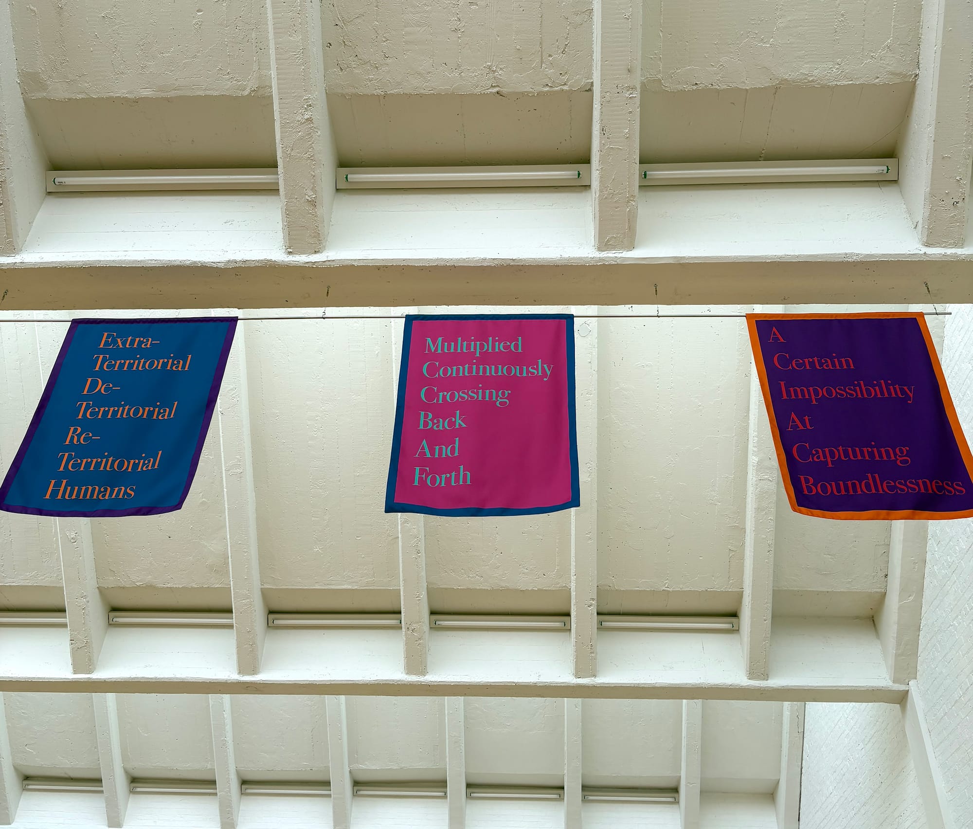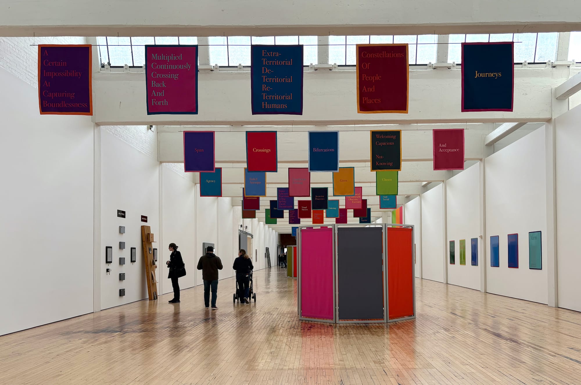 BEACON, New York — In 2022, I visited the Whitney Biennial with Tom, a longtime friend. I was crushing hard on him and he was not feeling it. Before the show, we guzzled a few drinks at a nearby bar. I will never forget landing in the lobby of the museum and coming upon Renée Green’s installation of colorful banners hanging high above. My tipsy gaze landed on a single statement of her existential commentary: “that flee into the void.” Those words aptly described the personal pangs of that afternoon: all emotions, all desires, all impermanent.