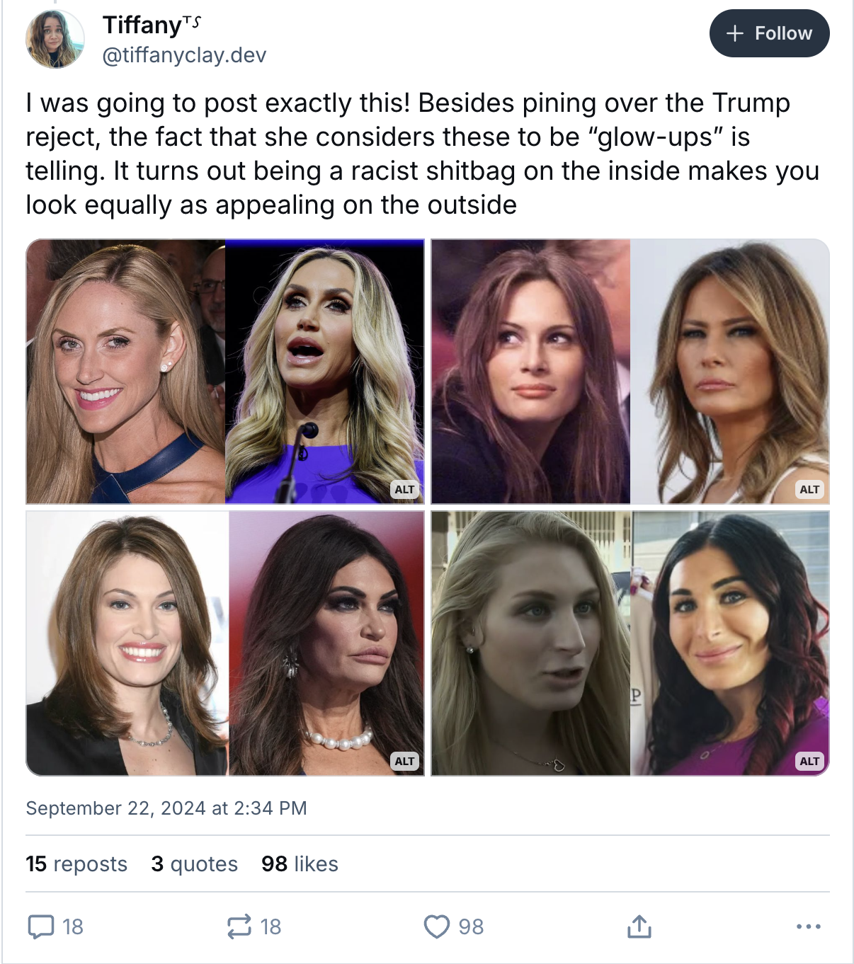 Predictably, Trump has replaced or is attempting to replace much of the leadership at surviving institutions and offices with lickspittle lackeys, middling non-experts who will devote what programs remain to pablum and kitsch, something obvious in the appointment of Siggy Flicker, a star of the Real Housewives of New Jersey, to the board of the United States Holocaust Memorial Museum. Even if grifting were this administration’s only transgression, that would be bad enough. But the results of this cultural revolution will be entirely darker. A variety of different factions are involved in the Trumpian moment, from the Christian Nationalists of the so-called New Apostolic Reformation to the Dark Enlightenment movement in Silicon Valley, but a certain operative aesthetic seems to have emerged out of this mélange. Amanda Marcotte, in an astute March essay in Salon, examines the visual idiom of MAGA from the hyper-attenuated plastic surgery that she calls “Mar-a-Lago face” to the Tesla cybertruck, hideous right-wing AI memes to Elon Musk’s sartorial choices. “In theory, we all prefer beauty over ugliness,” she writes. “[That] last proposition … has been seriously challenged in the era of Donald Trump.” Examining the uncanny valley effect of the bizarrely similar facelifts of Matt Gaetz and Kristi Noem, to the odd AI memes that feature Trump and Musk as rugged cowboys, Marcotte describes how “Fascism, especially the 21st-century version practiced by the MAGA movement, is at war with reality. The hyperreality of the MAGA aesthetic is about power.”