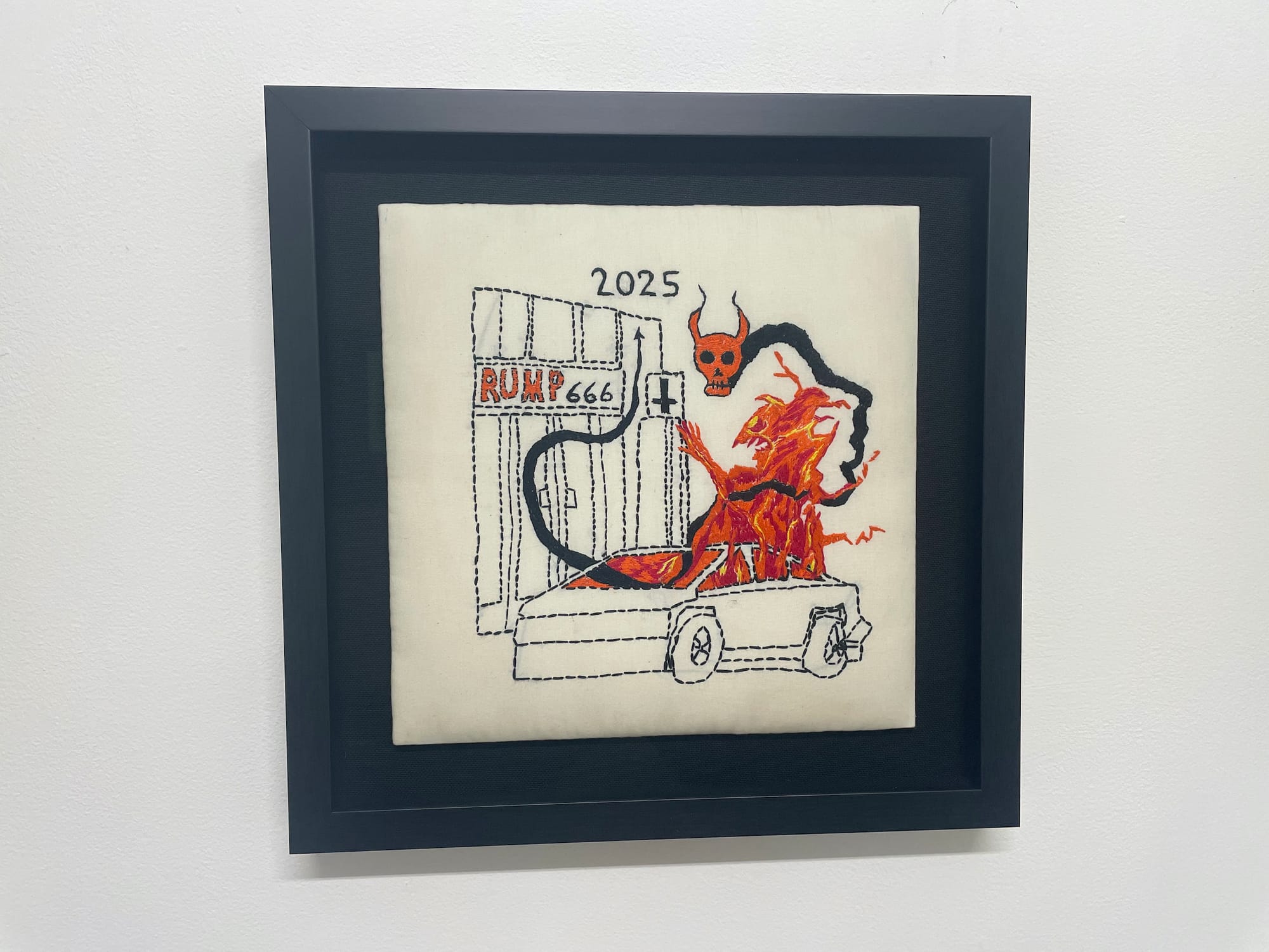 LOS ANGELES – I remember when the smoke plume from the Palisades and Eaton fires left LA in January, its black veil drifting out to sea like a hand loosening its grip. Recently, it feels like the smoldering mass has returned as an ICE-shaped fist tightening from the coast to the San Fernando Valley. Fire and smoke have become a symbol of civic uprising, from incinerated Waymos and cop cars to the gray clouds that burst out of the LAPD’s tear gas canisters and munitions. The shifting symbolism of this volatile element in LA is the subject of the group show Burn Me! at The Box. Curated by Molly Tierney, along with the gallery’s owner, Mara McCarthy, and her father, artist Paul McCarthy, it took shape after the McCarthy family and Tierney lost their homes in the Eaton blaze. The resulting exhibition examines how fire has shaped art and life west of the San Bernardino Mountains — in the last six months and far earlier.