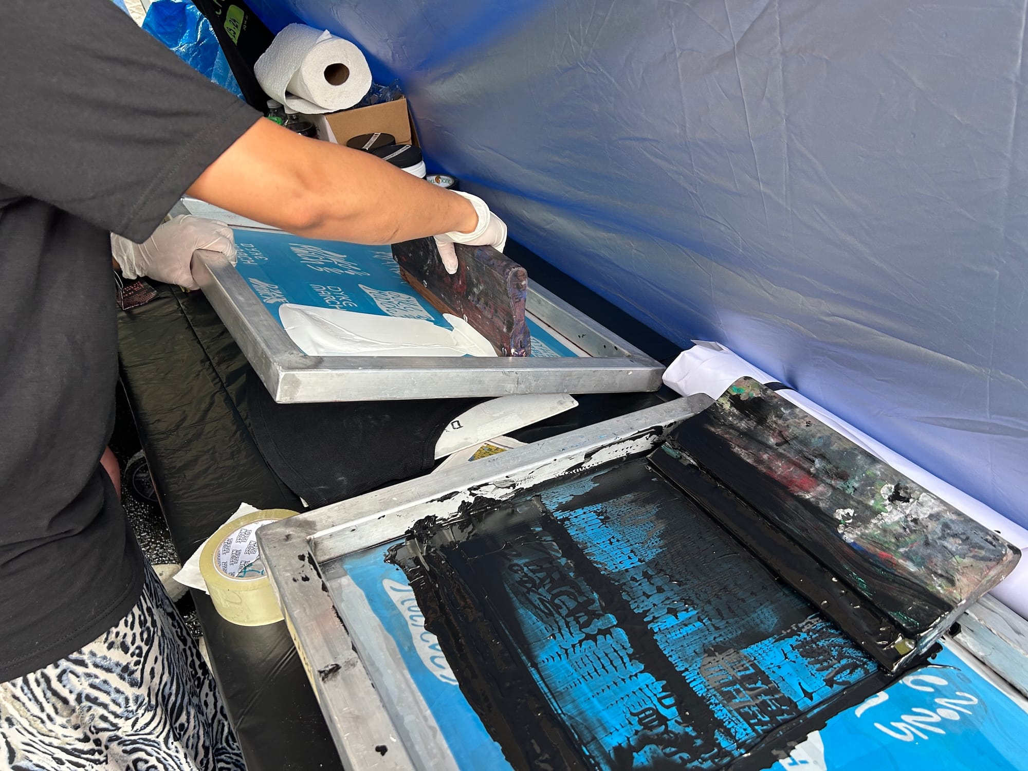 The Pride event also brought together local artists of all media. At Dyke March’s table, organizers screenprinted clothing in advance of the group’s annual protest procession later this month; the group also distributed zines titled after this year’s march theme, “Dykes Say No To Facism.” At another table, Brooklyn Creative Reuse, a nonprofit that collects and repurposes art materials, raised funds for its forthcoming physical location by selling gently used supplies, including quilt squares, buttons, sewing materials, and paints.