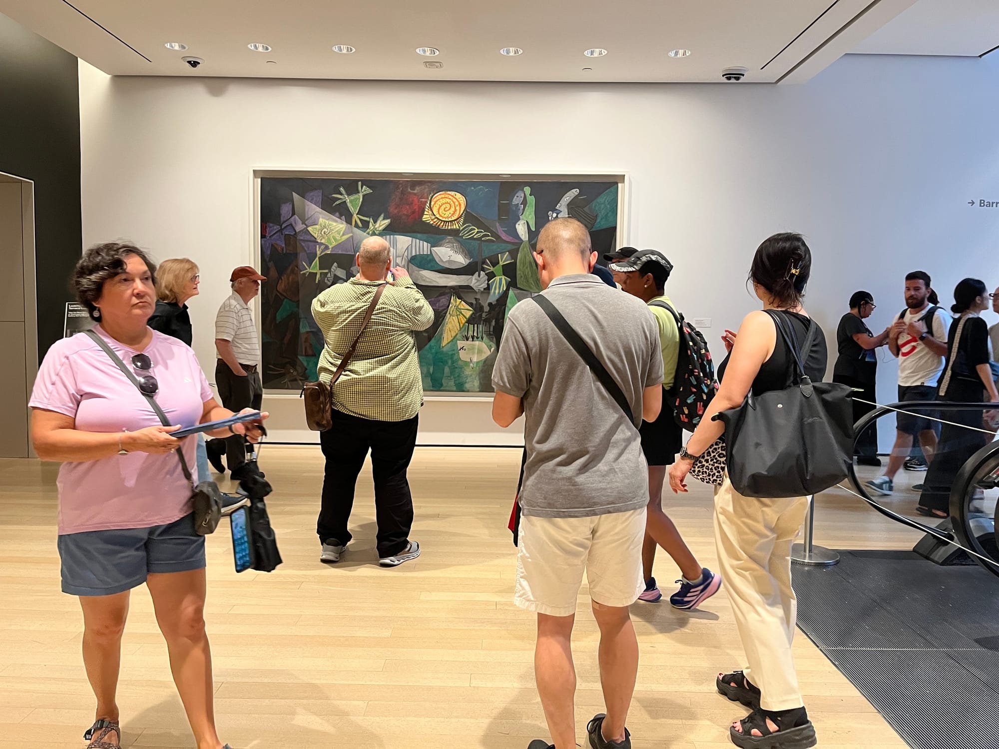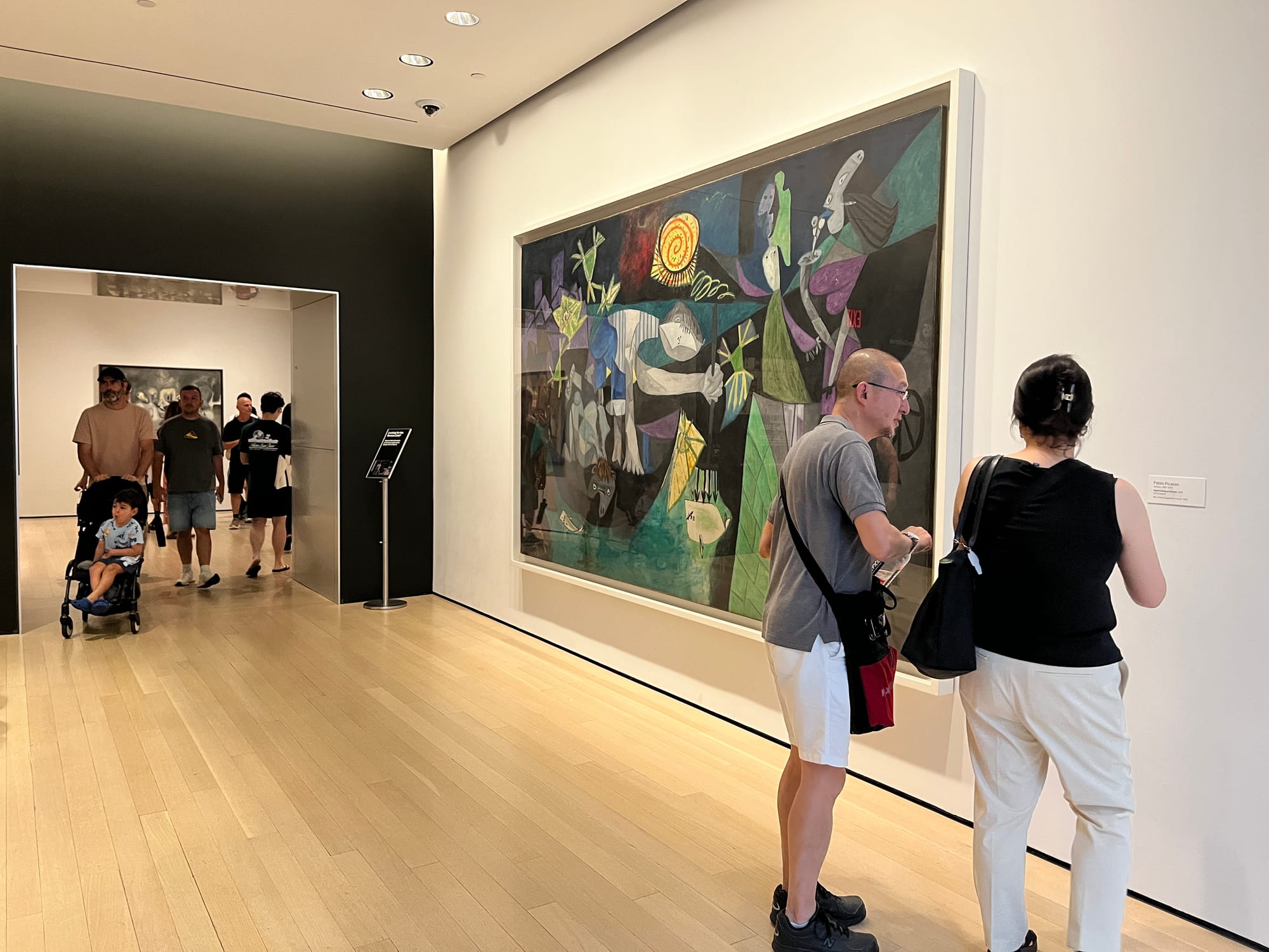 Currently hung on a wall at a busy intersection connecting two escalators on the museum’s fifth floor, it’s nearly impossible to have a private moment with this Cubist masterpiece, much less heed its alarm that we’re never really too far away from a third, infinitely more horrific World War, probably powered by AI.