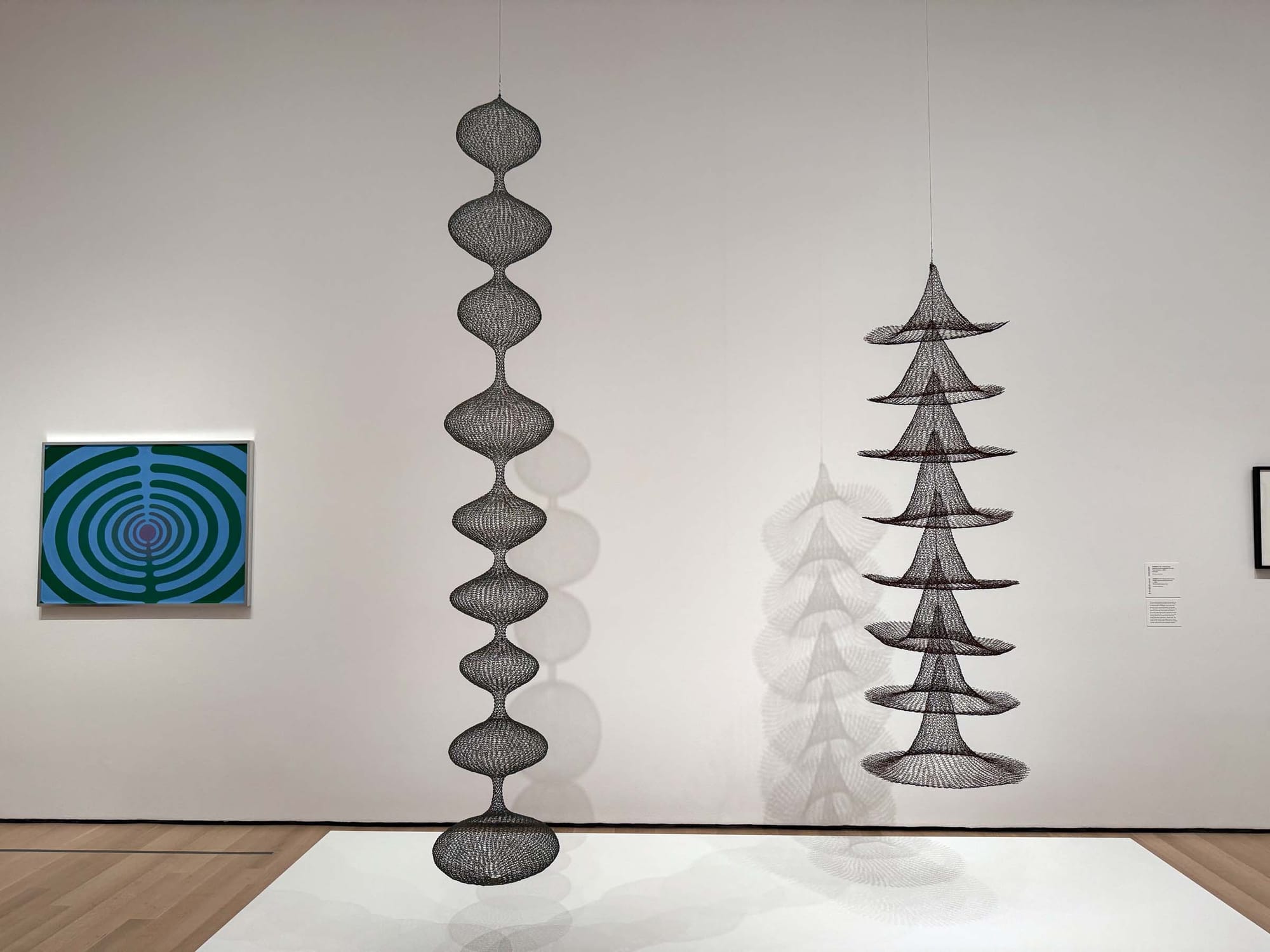 I’ve been thinking about Ruth Asawa’s shadows. They’re surprising, not shaped how you might expect: While one of her sinuous hanging basket sculptures might be elongated, with an oblong head and abdominal segments, for instance, its shadow might have a round belly and a shortened neck — another character entirely. Shadows aren’t an afterthought in Asawa’s work, but another dimension of it — another way in which one thing can contain or serialize into an infinity. What plenitude; what a rich, generous world.