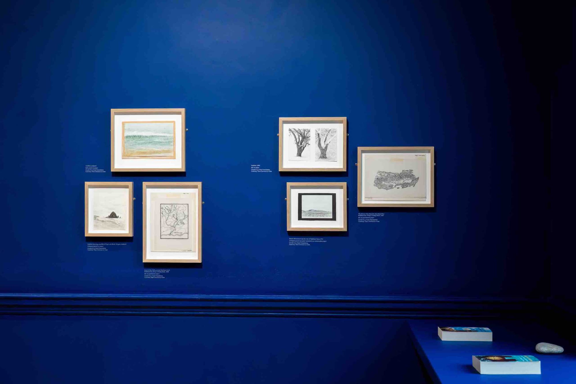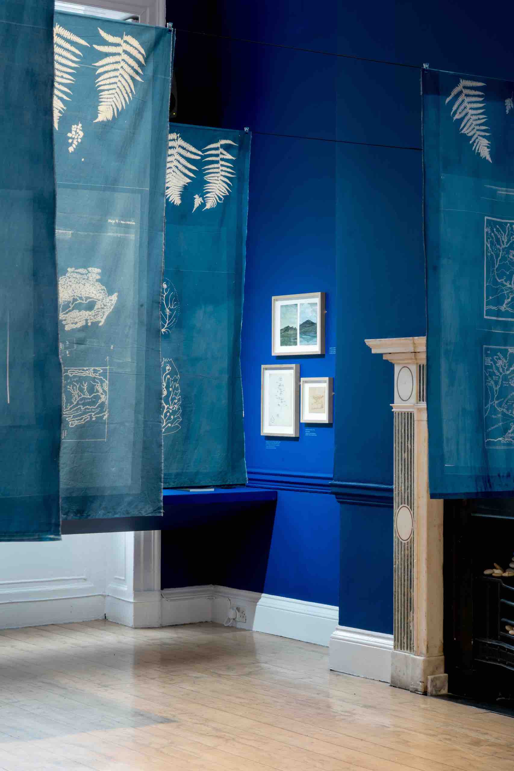 And what of Ursula K. Le Guin, the American novelist, whose many works occupied a fascinating terrain somewhere between fantasy and science fiction? How did she begin to realize her multiple fictional creations? A new exhibition at the handsomely sited Architectural Association in London — in a Georgian building that looks out onto London’s sole surviving entire 18th-century square — shows us. The Word for World is a rhythmical presentation of slender, wafty banners suspended from the ceiling, all blue cyanotypes on which are maps reproduced in white. Navigating the space is a matter of ducking and weaving.
