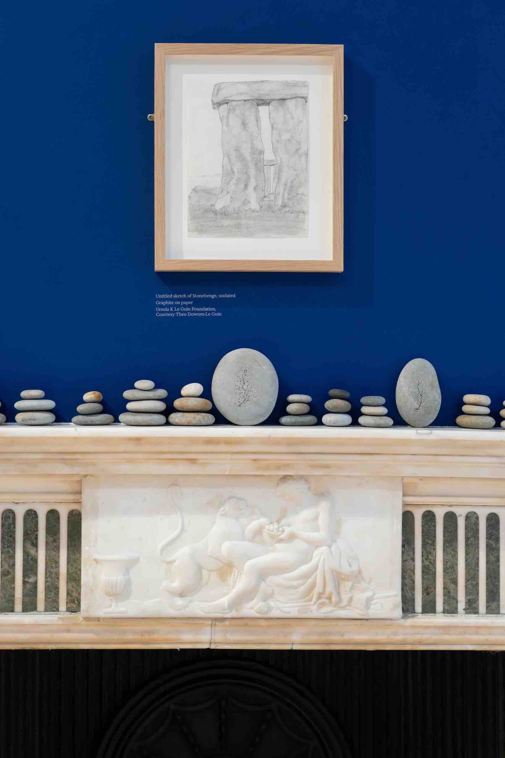 Yes, Le Guin was a map maker. That’s how she found her way into her invented worlds. After she made her maps, she proceeded to settle on them and mentally walk around inside them. If we home in on the exhibition’s maps themselves we can begin to unlock her secrets. Take, for example, “Earthsea,” an aerial view of a great archipelago of islands, several of the larger ones in a great central cluster, others frittering out in all directions of the compass. A close look at all the hand-drawn map's detail reveals a great deal of naming of particular locations: Havnor, Osskill Sea, the Inmost Sea, mountains, a small group of islands collectively known as The Torikles. It was her way into the imaginative world that would eventually end in a celebrated trilogy of novels. How did it help her? How did it show her the way ahead as a conjurer of a world that had never before existed?