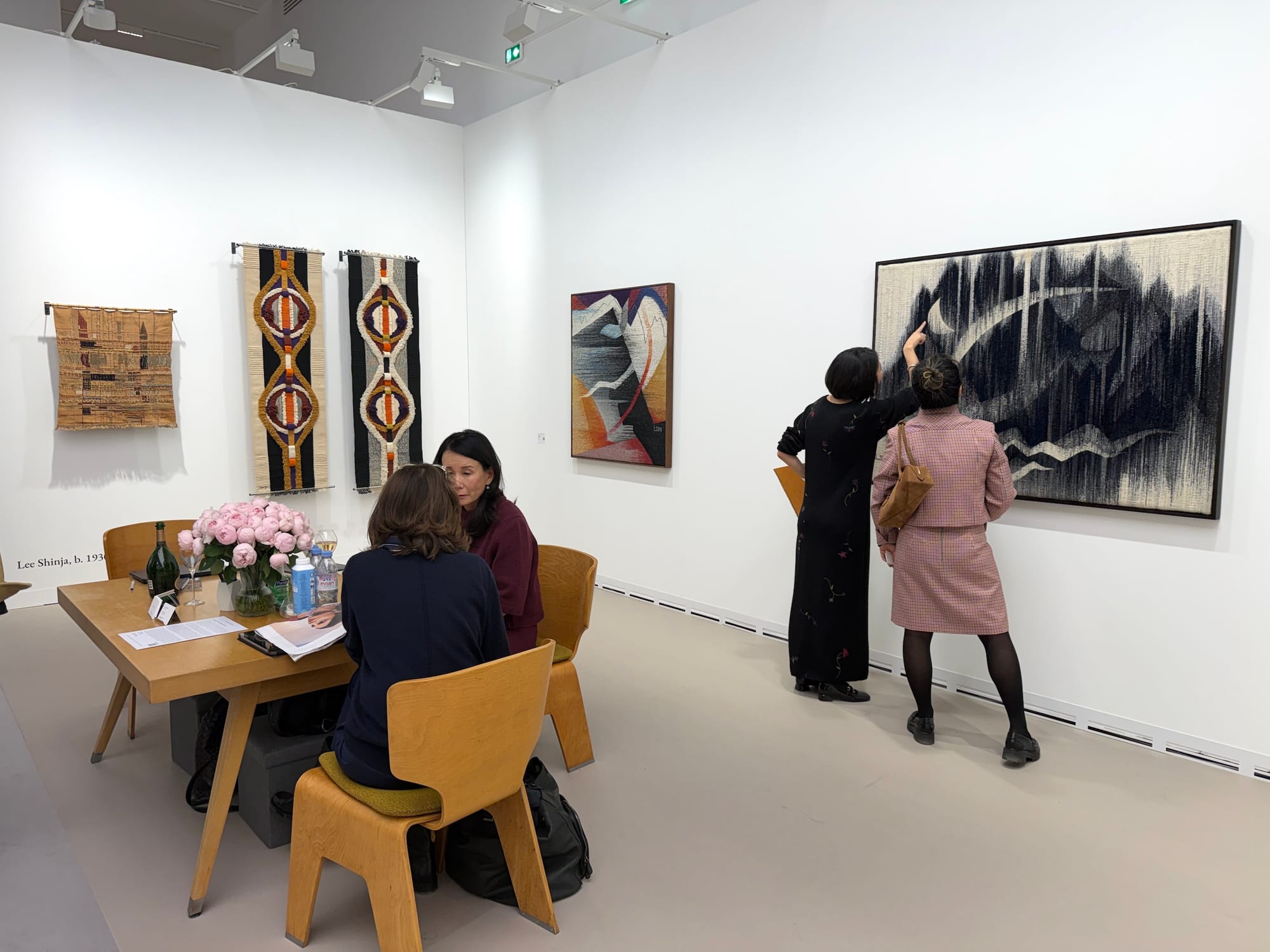 Tina Kim Gallery presented geometric textile works by Lee Shinja, a 95-year-old Korean artist who has a major retrospective at the Berkley Art Museum. Galerie Eric Mouchet, with spaces in Paris and Brussels, showed stunning Constructivist works by Ella Bergman-Michel, one of which, the gallery said, was acquired by the Los Angeles County Museum of Art. Meanwhile, Düsseldorf-based Kadel Willborn presented minimalist photographs by Bauhaus artist Lucia Moholy, poignantly paired with a quietly poetic piece by Liz Deschenes made in response to Moholy’s work.