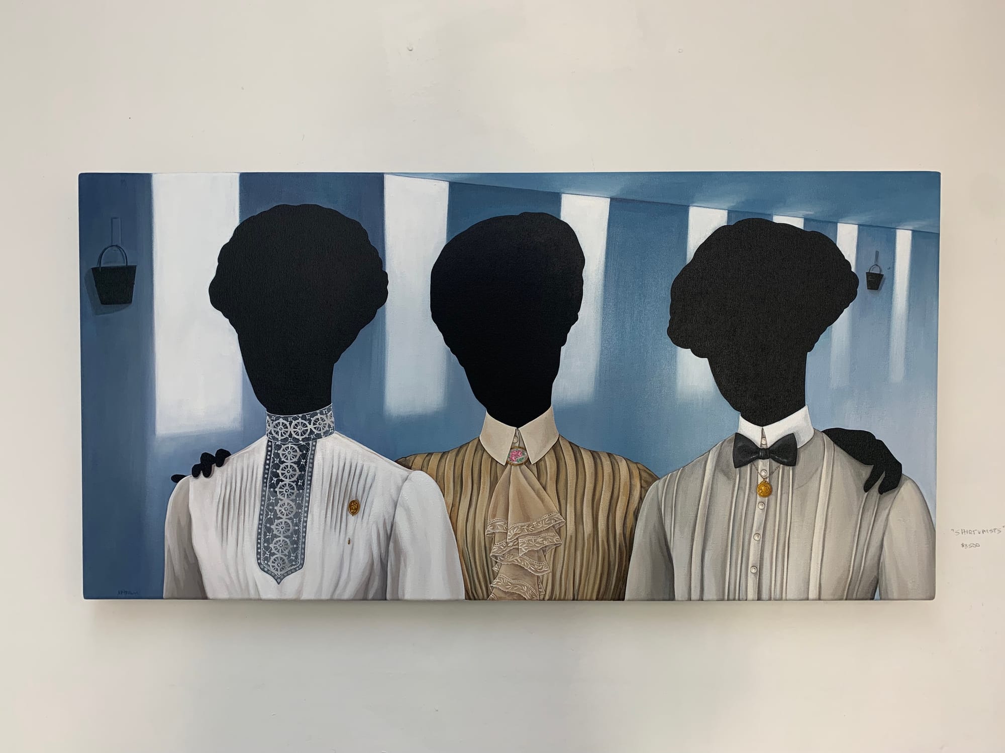 If you are willing to explore the suburbs of DC, I recommend checking out the Kensington Antique Row and the beloved Adah Rose Gallery. The current exhibition, A Life Well-Lived, is the result of more than three years of research by Maremi Andreozzi on the relationship between her female subjects and their historical context. The original series included smaller portraits depicting often-overlooked women from history, including doctors, natural healers, aristocrats, activists, artists, and writers — all of which are also on display here. Newer works mark a development of Andreozzi's style that recalls Renaissance paintings. These silhouettes, almost imprisoned within their authentic landscapes, are adorned with brooches, lace, earrings, hats, and dresses, and serve as profound statements about the connection between the erased or overlooked subject and her symbolic representations.