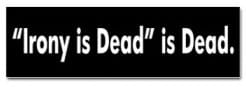 According to the New York coroner’s office, irony was pronounced dead at 3:45 pm on September 12, 2001. However, taking cues from countless episodes of General Hospital, it was miraculously resurrected a year later (sporting a face-lift) and continues to party hard. It can be found pounding shots near paintings, artworks about the failure of modernist ideals, abstract or political art, and abject Photoshop collages of celebrity culture.