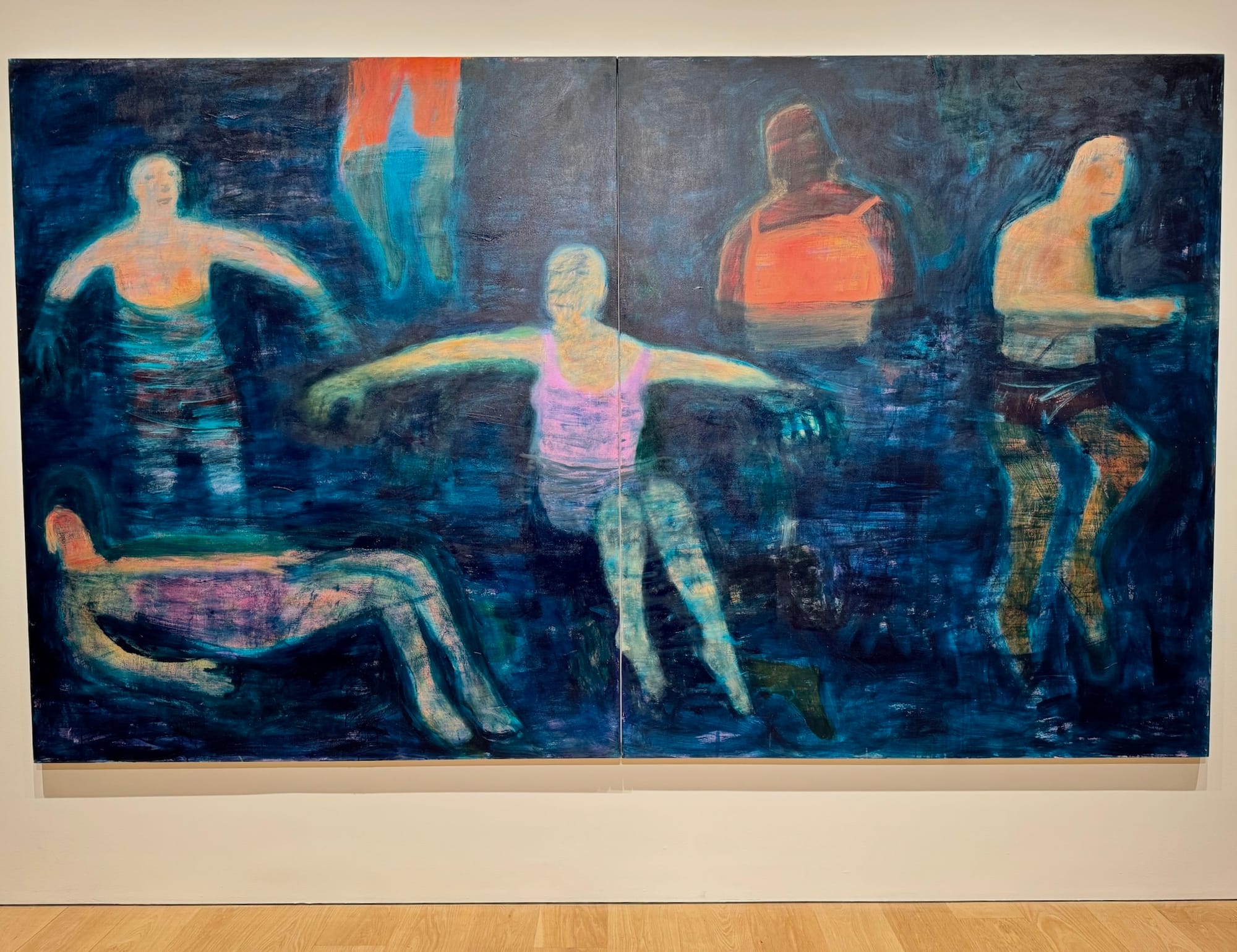 Figures are at the center of Katherine Bradford’s latest exhibition of new works at Canada Gallery, and she’s given her audience what we wanted: more bather paintings. Hurray! “In the Lake,” a large history-painting-sized canvas, is covered with at least six figures, though there are signs of others poking out into our perceptual register. They have a new weight and solidity that her past figures never quite had. In “Back Dive in Darkness,” a similar sense of gravity is also evoked in a way I don't remember seeing in her work before, while the figures in “Midnight Waders” appear to express a type of emotional awareness that also feels novel in her art and “In Bed Together” depicts a glorious, cosmic moment of intimacy that anyone in love will feel viscerally. Something new is brewing here, and I suspect this is only the beginning. —HV
