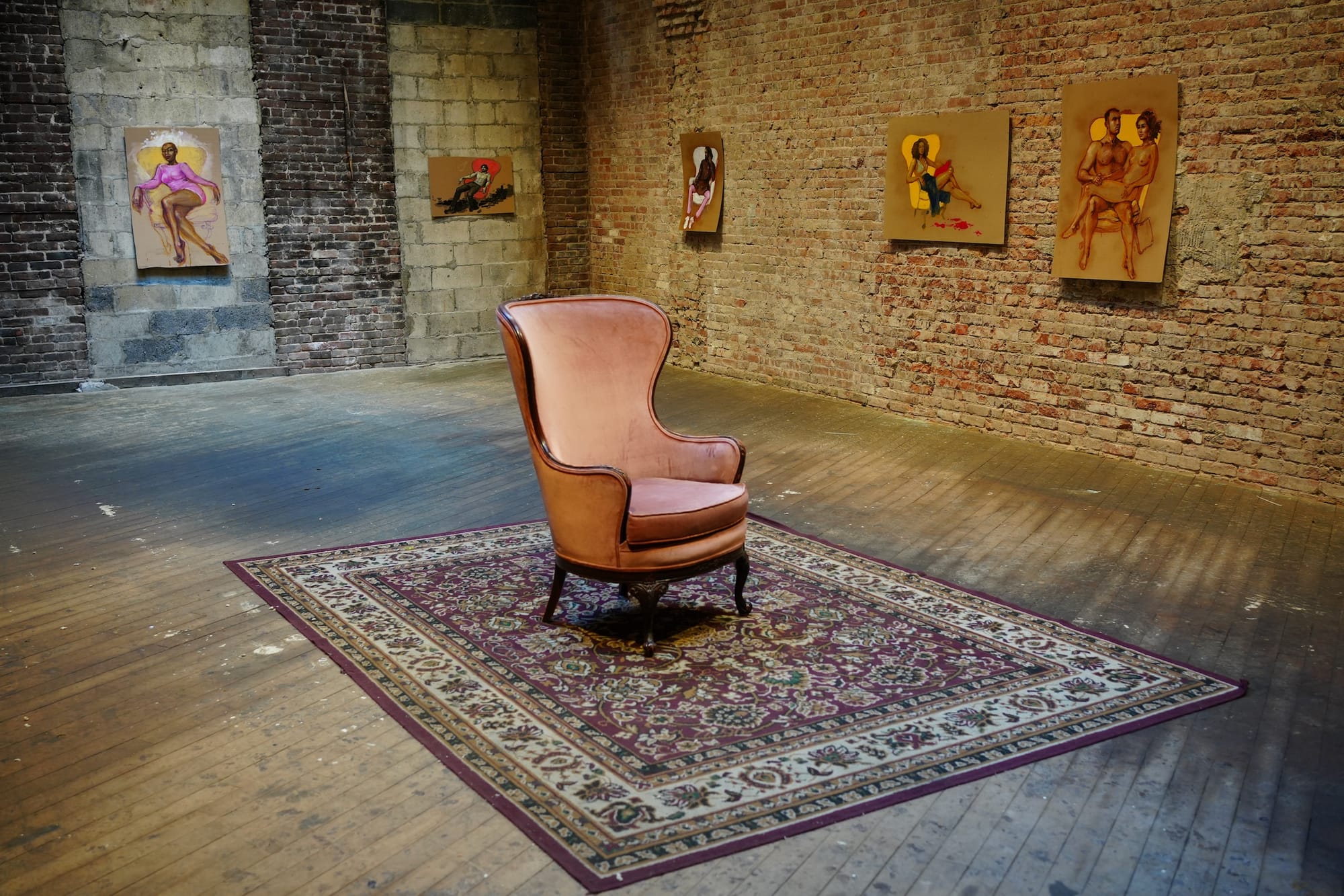 Our contemporary Toulouse-Lautrec, Molly Crabapple, loves to depict the marginalized and precarious, whether on the streets of New York, in Gitmo, in a war zone, or seated comfortably on her great-grandmother’s rose velveteen chair. In this pop-up show, Crabapple invited friends and strangers to take a seat in her inherited chair and be drawn. The results are a flurry of vibrant lines, well-articulated details, and snippets of stories that you can’t wait to hear more about. They’re sometimes sexy, often mysterious, and always striking. Like Toulouse-Lautrec, she often paints on boards, and if someone wants to pair these portraits with the works by the Post-Impressionist (like the ones at the Brooklyn Museum), I bet it would look 🔥.