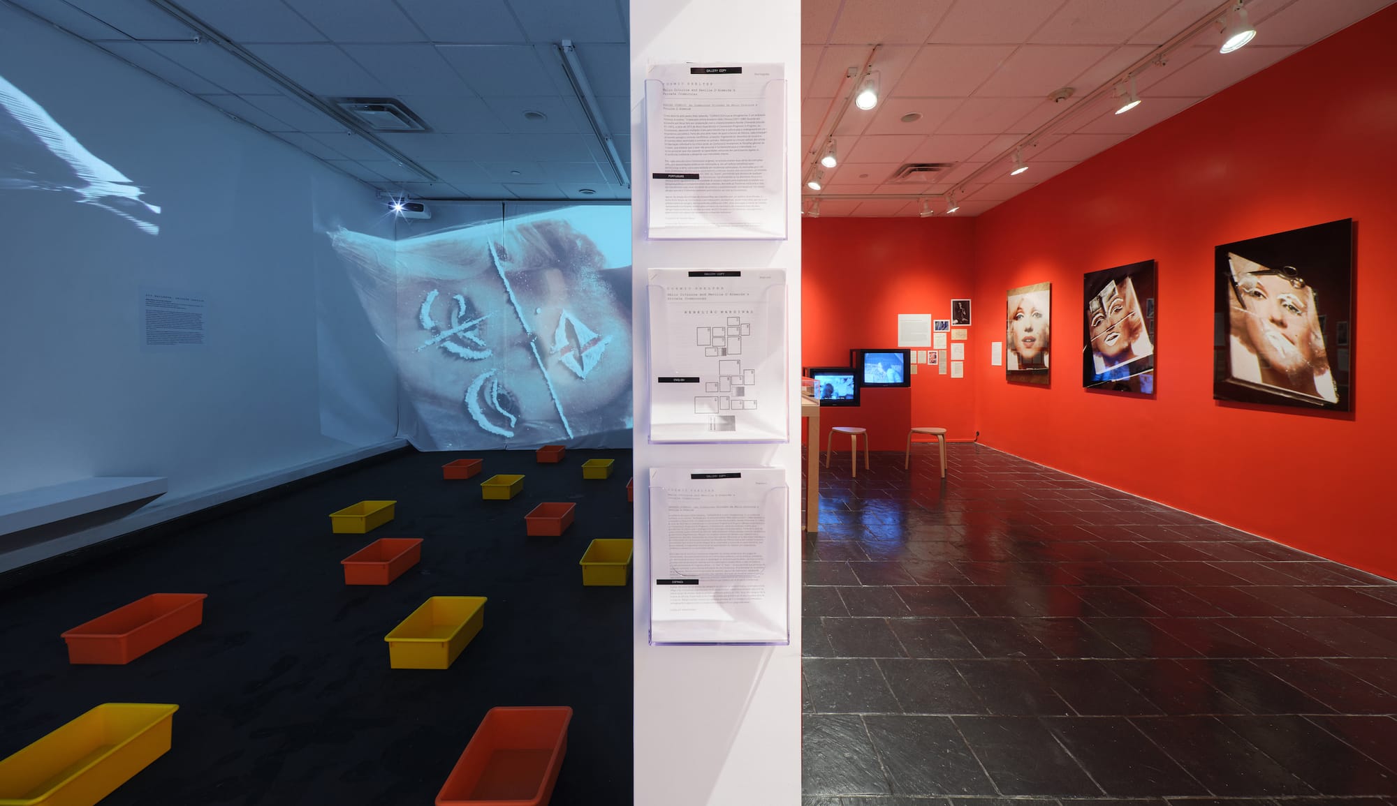 Though artist Hélio Oiticica and filmmaker Neville D’Almeida met in Rio de Janeiro in 1967, they collaborated for the first time in 1970s New York. Oiticica, who self-exiled in the city amid Brazil’s military dictatorship, pushed his practice in a more experimental and transgressive direction when he worked with D’Almeida on Bloco-Experiências in Cosmococa–Programa in Progress (1973), a series of “supra-sensorial” experiential environments. On view at the Leubsdorf Gallery are two selections from the strange and thrilling Cosmococas — a portmanteau of “cocaine” and “cosmos” — featuring uncanny projected slideshows of pop-culture icons, mambo music, snippets of works by Yoko Ono, and buckets of water that visitors can dip their toes in. Art just hit different in the ’70s, am I right? —VD